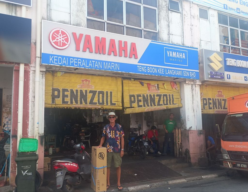Der Motorkauf war lustig. Per WhatsApp haben wir uns bei verschiedenen Läden erkundigt welche Außenborder sie, zu welchem Preis, vorrätig haben. Dann sind wir zu der Adresse gefahren und haben in einem wunderbar wuseligen Laden, der Motorräder und Außenborder repariert und verkauft, und in dem eine unübersehbare Anzahl von Mitarbeitern herumschwirrte nach dem Motor gefragt. Es gab ein wenig Verwirrung, doch dann tauchte er auf. Dass wir den Motor per „Grab“ mitnehmen wollen sorgt für allgemeines Gekicher. Auch der Fahrer findet es lustig, ob wir Ersatzteile gekauft haben will er wissen.