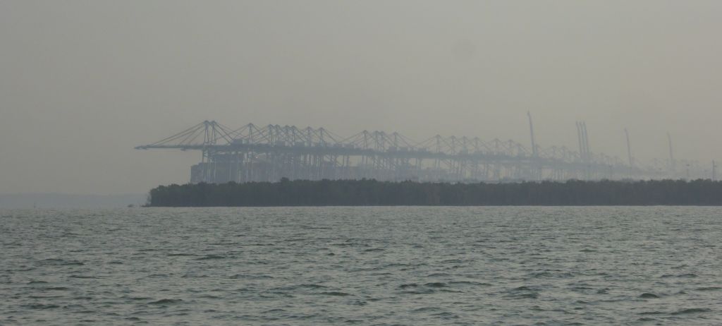Nachdem wir das Ankerfeld hinter uns gelassen haben, schicken uns Gewitterwolken ihre kühlen Böen, als der Wind abnimmt und es nur noch heftig blitzt, nähern wir uns einem Bereich mit vielen Fischern. Die sind leider wieder kreativ beleuchtet, man sieht also nicht wohin sie fahren. Wir sind froh, dass wir zu zweit sind und sie ganz gut im Blick behalten können. Die Blitze aus dem Gewitter erreichen vor uns nun auch die Wasseroberfläche, das ist sehr unheimlich, hat aber den Vorteil, dass wir die Boote um uns herum für einen kurzen Moment erkennen können. Als es hell wird, werden auch die Fischer weniger. Der Strom schiebt uns erst, bremst uns dann ein paar Stunden und läuft dann wieder mit uns. Die Genua darf ein bisschen mitziehen und wir kommen besser voran als erwartet. Als wir uns Port Klang nähern, wimmelt es wieder von Fischern, es ist aber problemlos möglich ihnen auszuweichen. Wir hängen noch zehn Meilen dran und erreichen den Ankerplatz gegenüber von Containerterminal in Port Klang am frühen Abend. 91 Meilen in 17 Stunden, das war ein langer Tag. Um halb neun fallen wir in die Koje und schlafen sofort ein.
