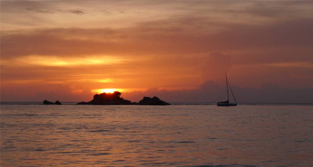 Der Wetterbericht ist sich sehr uneinig. Wind aus Nord oder Süd. Schwell aus West. Schwierig, danach einen Ankerplatz auszuwählen. Wir verbringen einen schönen Sonntag in der Ankerbucht im Süden Pangkors. Das Wasser ist so klar, wie schon lange nicht mehr und endlich etwas kühler. Wir baden ausgiebig, nur ein weiteres Bad am Abend fällt aus. Nachdem wir hörten, dass in der Nähe ein französischer Segelfreund zu engen Kontakt mit einer Qualle hatte und sich ernsthaft verletzt hat, haben wir keine Lust mehr dazu.