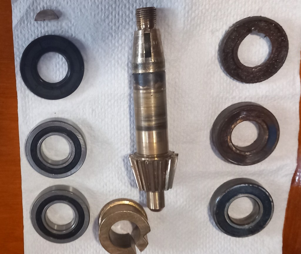 Neue Lager für den Steuerkopf der Steuersäule sind mit der Familienpost nach Singapur geliefert worden. Wir überlegen uns lange, ob wir uns zutrauen die Baustelle zu eröffnen. Wenn wir den Steuerkopf kaputt machen, uns Ersatzteile fehlen oder wir in der Mitte der Reparatur nicht weiterkommen, haben wir ein Schiff ohne Ruder. Der Austausch der Lager in der Steuersäule damals in Nouméa hat uns vorsichtig werden lassen. Das war ein ziemlich großes Projekt. Schließlich nehmen wir unseren Mut zusammen und arbeiten uns vorsichtig Schritt für Schritt vor. Der Austausch der Lager funktioniert problemlos. Allerdings nur, weil wir das passende Werkzeug, einen Abzieher, an Bord haben. Auf der Suche nach einen Sprengring, ein kleines Ersatzteil, das uns fehlt, lernen wir lauter kleine Läden kennen und bekommen den passenden schließlich in einer Motorradwerkstatt geschenkt.