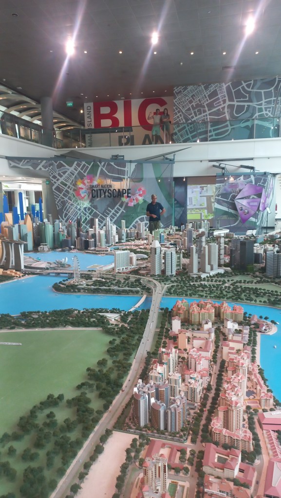 Eine Woche haben wir in Singapur verbracht. Diesmal haben wir die Singapore City Gallery besucht. Dort gibt es eine große, interaktive Ausstellung zur Stadtplanung und -entwicklung Singapurs. Wir lernen nicht nur, dass Singapur seine Fläche weiter vergrößert, der Containerhafen verlegt und der Flughafen ausgebaut wird, sondern auch, dass Singapur als Stadtstaat ganz besondere Herausforderungen meistern muss. Die Ausstellung hat uns ausgesprochen gut gefallen, wir haben dort einige Stunden verbracht, grüne Straßen geplant und Vergleiche mit anderen Städten angestellt. Singapur soll noch grüner werden, noch mehr Grünanlagen, Dachbegrünungen und Parks bekommen. Neben den Singapurer Plänen, werden auch Projekte aus anderen Städten vorgestellt, wie der Hamburger Autobahndeckel oder die Umgestaltung von Bostons Wasserseite.