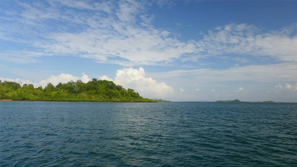 Als wir nördlich von Sebangka einen Ankerplatz finden, stellen wir fest, dass die Tiefen in der Karte (mal wieder) nicht mal annähernd stimmen. Statt weniger als fünf Meter, ist es über 20 Meter tief. Nach einigem Suchen finden wir vor einer kleinen Insel eine geeignete Stelle und verbringen auch hier eine ruhige Nacht.