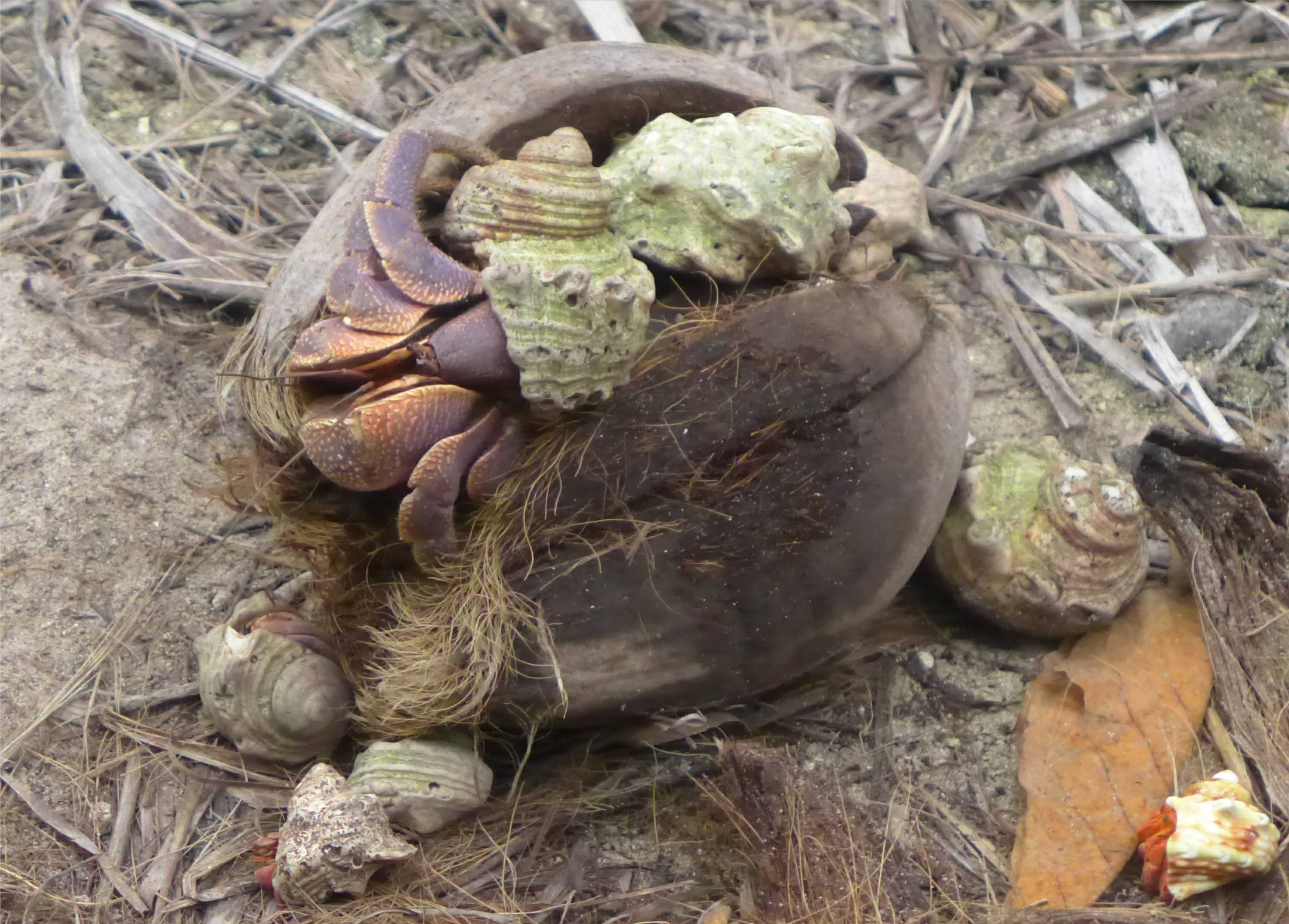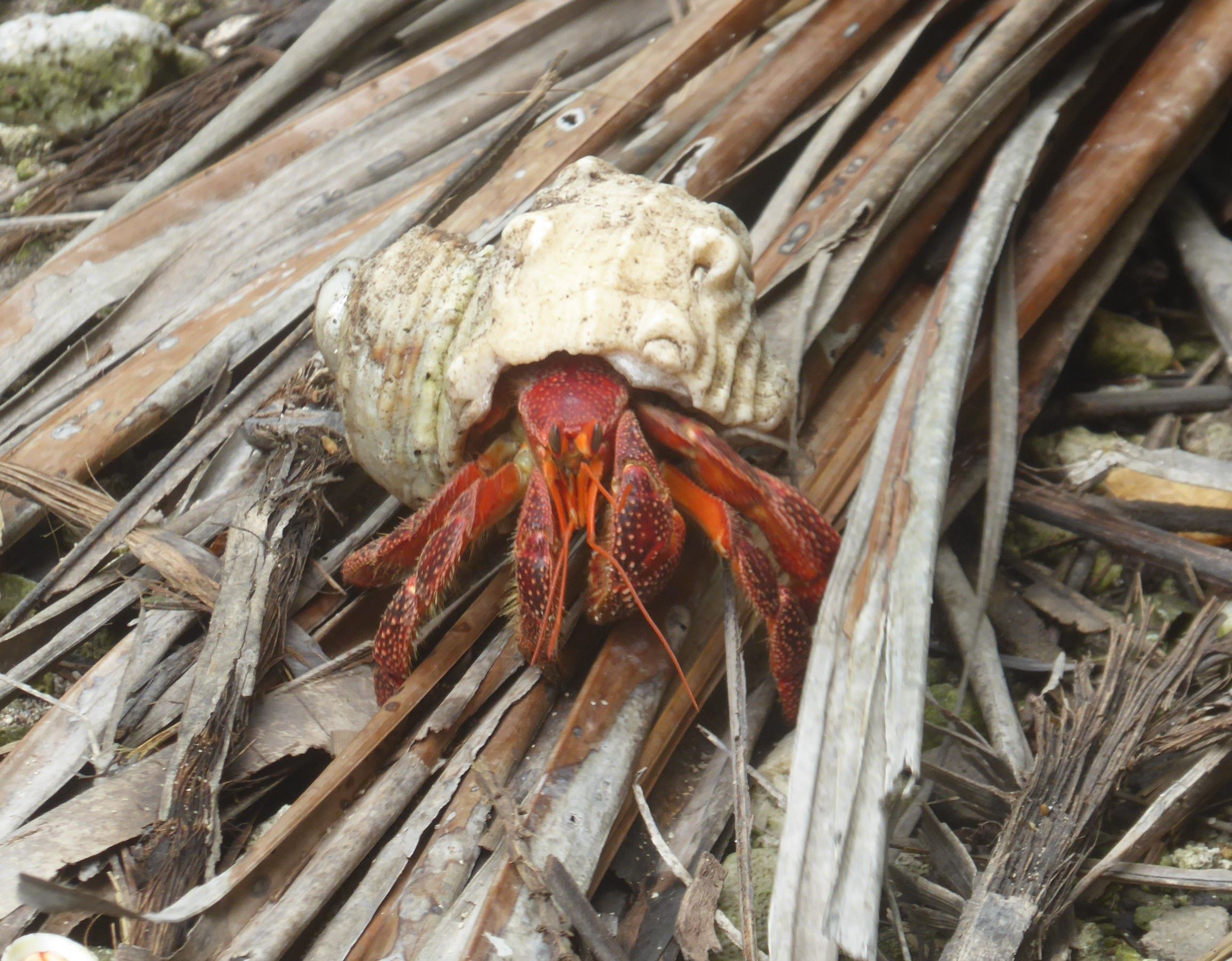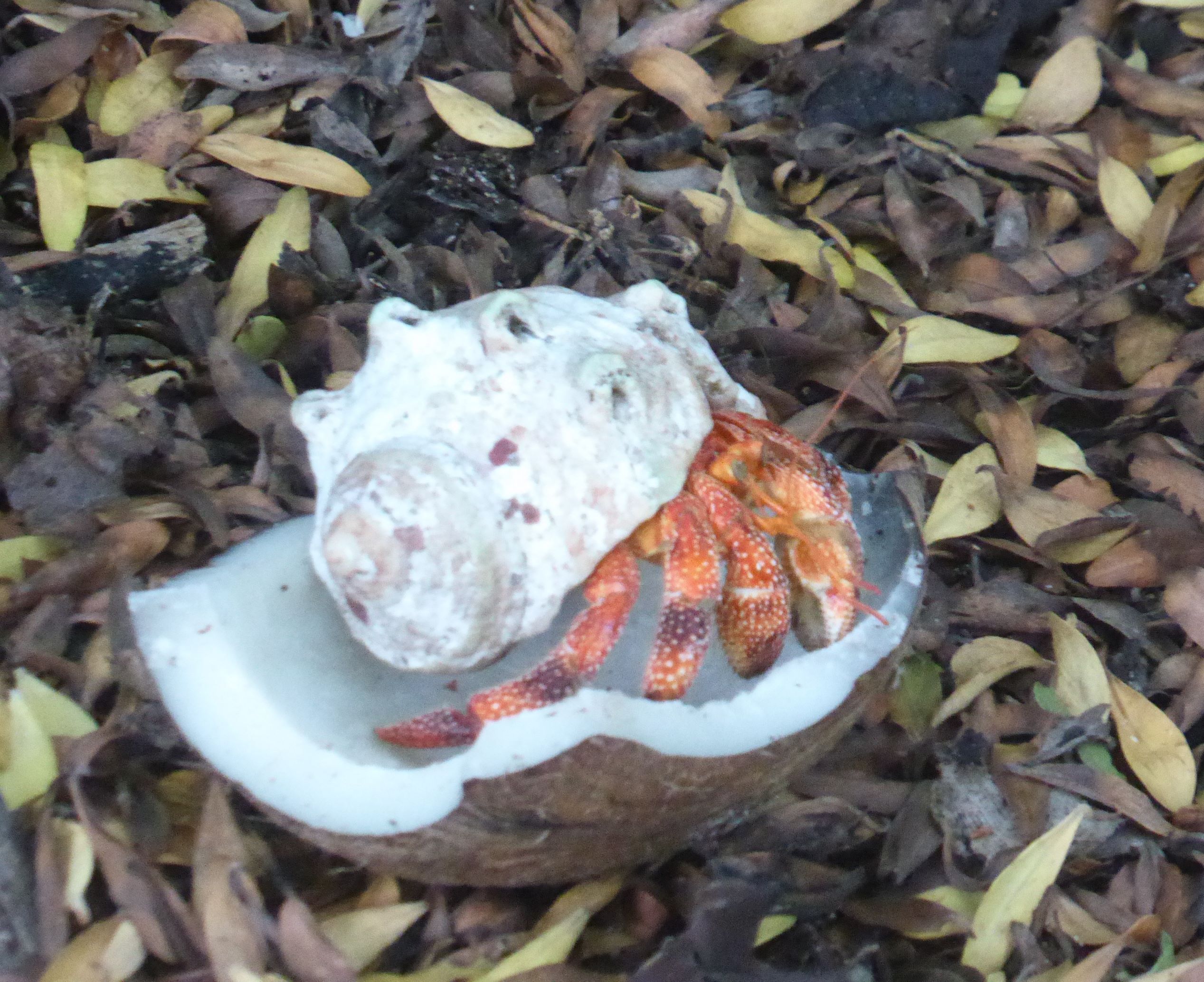 Abends auf dem Weg zum Steg stolpern wir fast über diesen großen Palmendieb. Diese großen Krebse können durchaus siebzig Jahre alt werden!