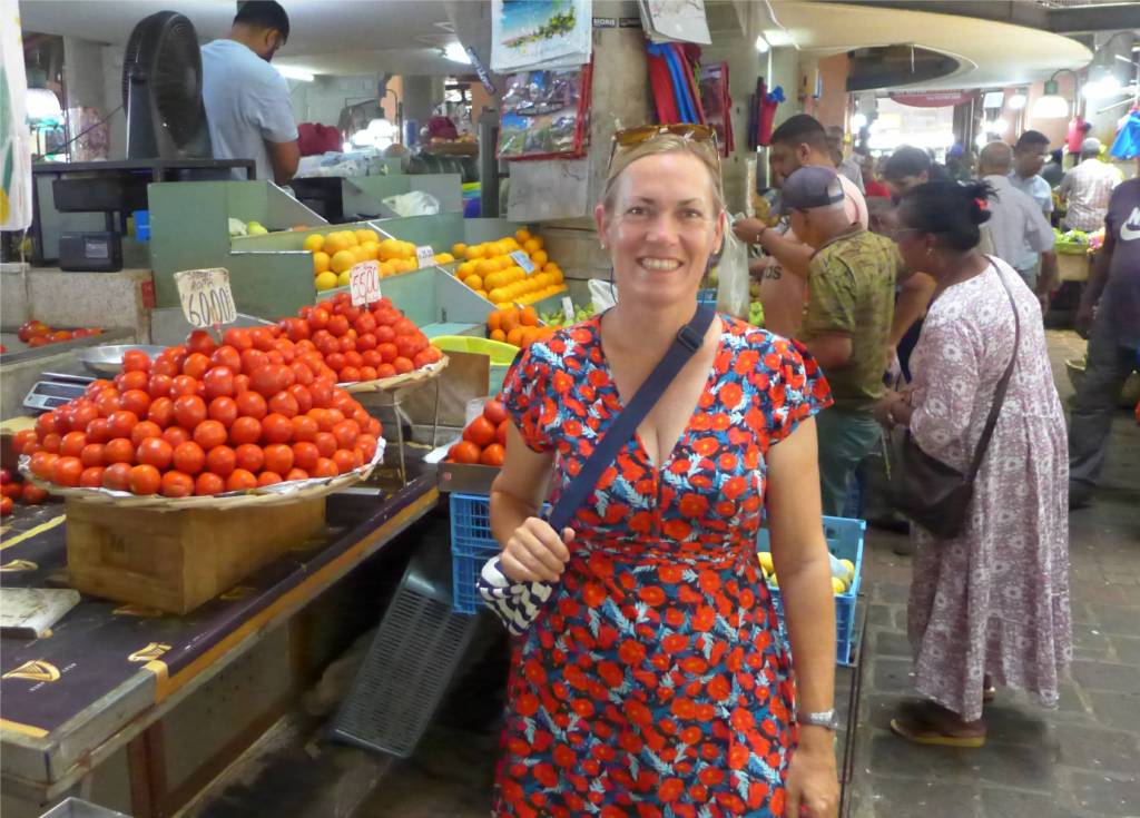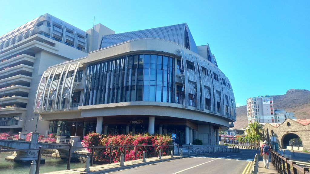 Port Louis ist keine Stadt, in der man wegen ihrer Baudenkmäler flanieren möchte, auch wenn es eine Reihe ansehnlicher Gebäude und einige moderne Türme gibt. Viele Häuser sind eher schmucklos und befinden sich in unterschiedlich verfallenen Stadien. Das Leben in den Straßen macht die Stadt interessant. Es ist bunt und wuselig, es gibt unzählige Stoff-, Kleidungs- und Krimskamsläden. Der Markt ist schön. Es gibt Obst, Gemüse, Gewürze und Souvenirs. Ich soll einen Kaschmirschal kaufen.