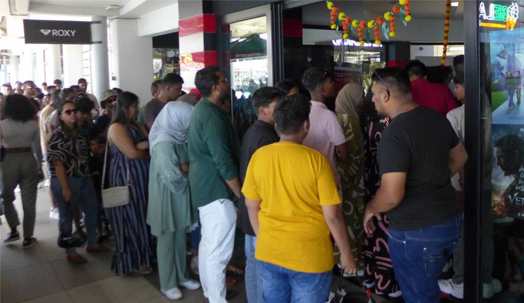 Der Komplex Caudan, der ans Hafenbecken grenzt, ist mit Hotels, Casino, viel Shopping und noch mehr Restaurants etwas künstlich. Trotzdem ist es hier nett und immer was los. Zu Divali (hinduistisches Lichterfest) gibt es eine Modenschau. Sari-Träume in Rot und Gold werden präsentiert. Am Samstagmorgen wundern wir uns für die endlose Schlange vorm Kino. Nobbi fragt und erfährt, dass es einen neuen Bollywood-Film gibt.