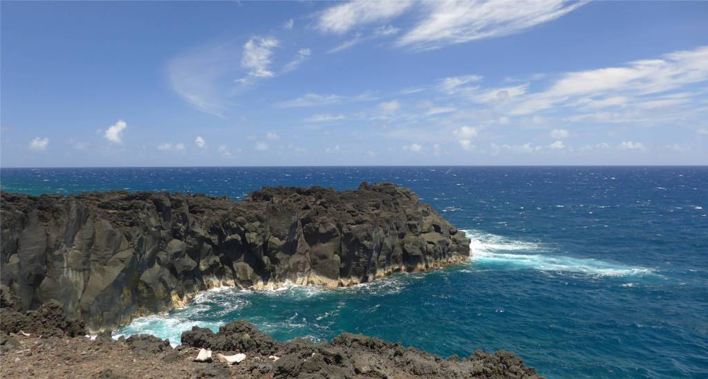 Der Piton des Neiges ist vor 12000 Jahren erloschen, ganz im Gegensatz zu seinem Kollegen, dem Piton de la Fournaise, der weiter südlich liegt und noch aktiv ist. Ganz im Süden der Insel kann man die Spuren des letzten Ausbruchs von 2007 sehen, als die Lava über die Straße ins Meer floss. Dort fahren wir mit Zwischenstopps entlang der Küste hin. Viele Kreisverkehre wollen bezwungen werden und La Réunion hat mehr Verkehr als so manche Stadt in „Metropolitan-Frankreich“, deshalb sind wir froh, dass wir nicht zurück zum Boot fahren müssen. In Saint-Pierre haben wir eine nette Unterkunft gebucht. Morgens würden wir gerne auf unserer kleinen Terrasse sitzenbleiben, Vögel beobachten und Kaffee trinken, doch wir haben viel vor. Wir nehmen die Traverse die quer über die Insel führt und uns zur Vulkan-Route bringt. Eine Straße die auf den Piton de la Fournaise führt. Am oder auf dem aktiven Vulkan gibt es unwirkliche Vulkanlandschaften aus Lava unterschiedlichster Form und Farben. Das ist toll anzusehen, aber uns gefällt der Teil der Stecke der zunächst zwischen Kuhweiden mit Kuhglocken (die Kühe nicht die Weiden) durchführt und später durch eine Art Heidelandschaft mit tiefen Tälern noch besser.