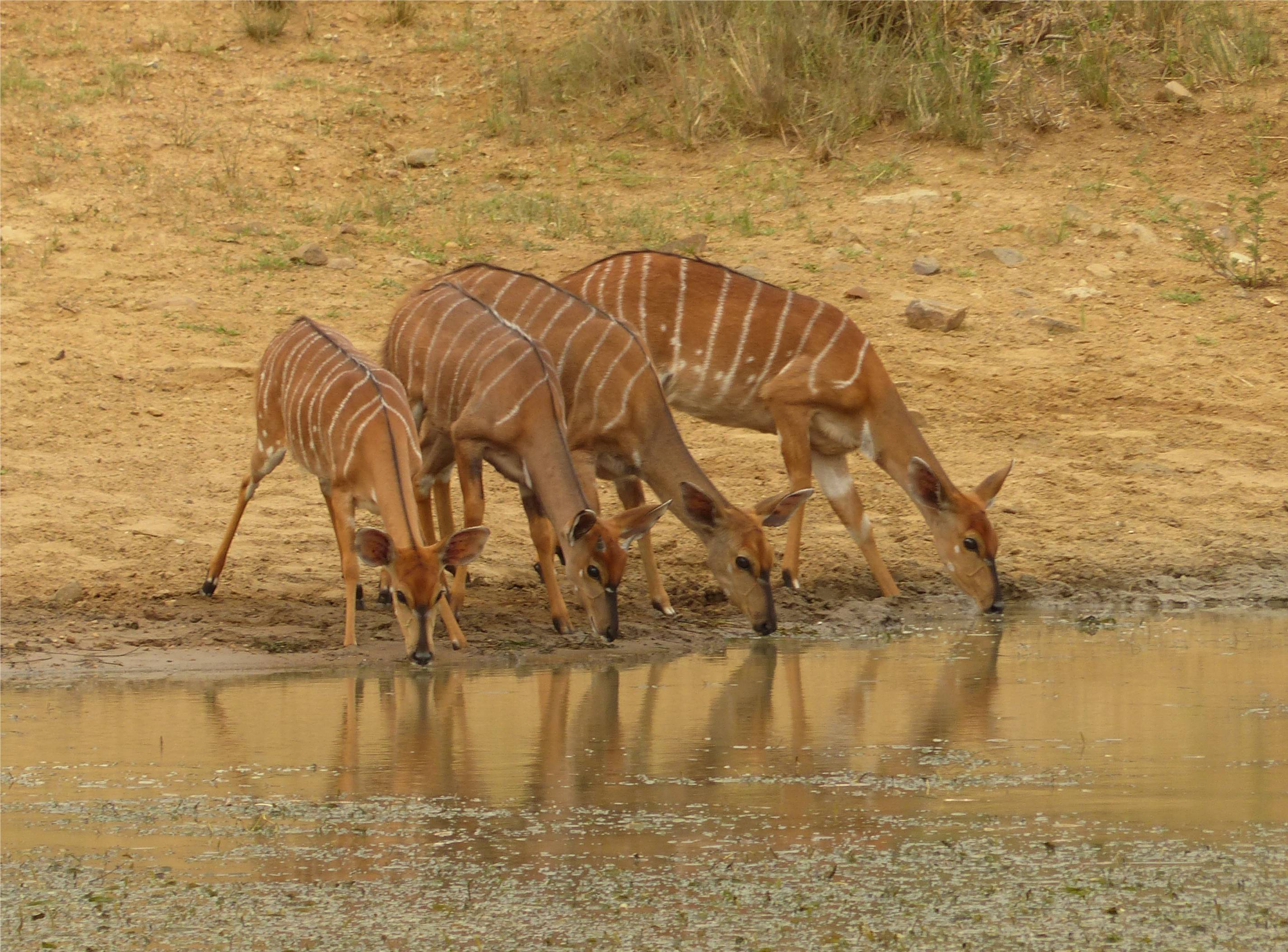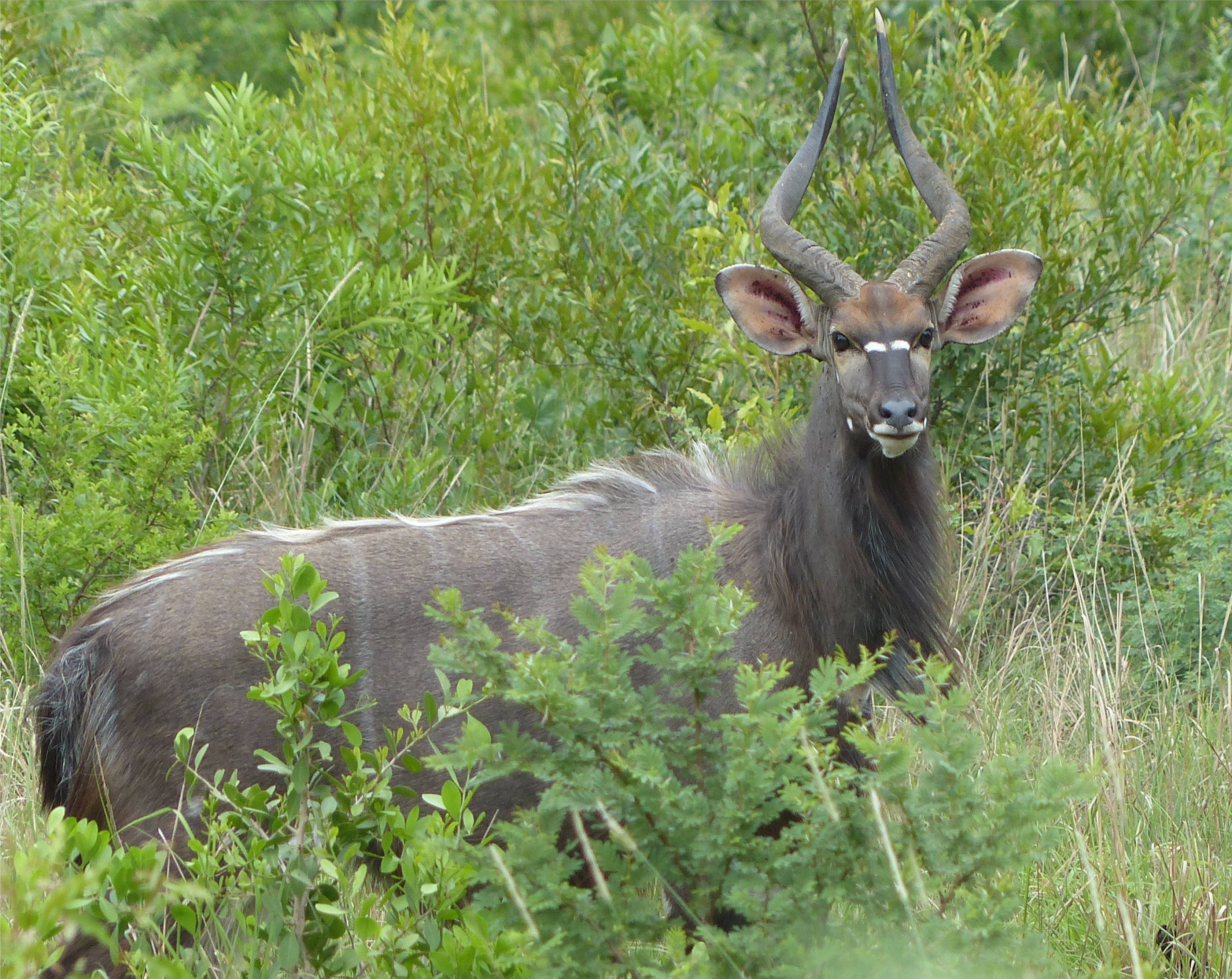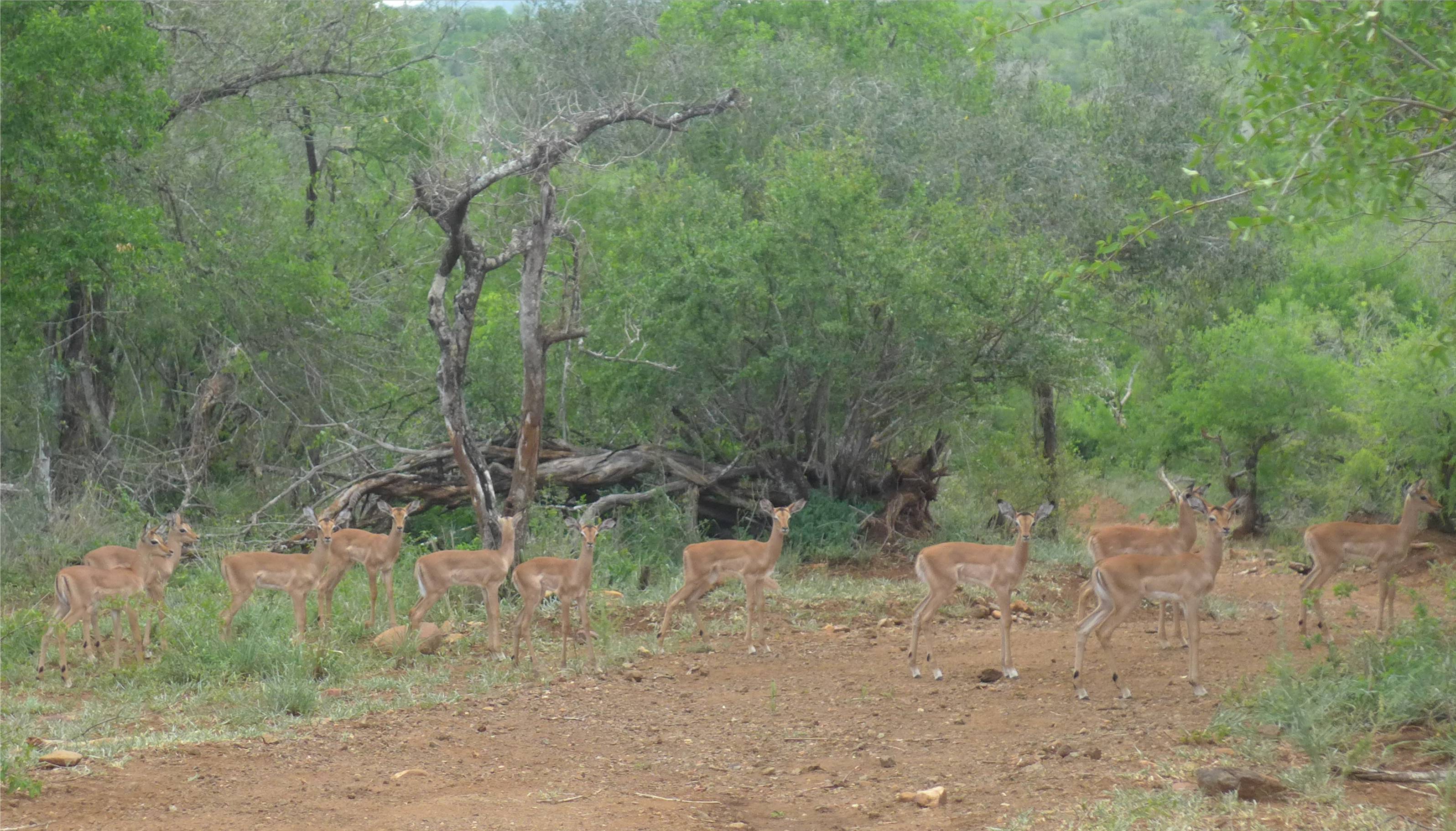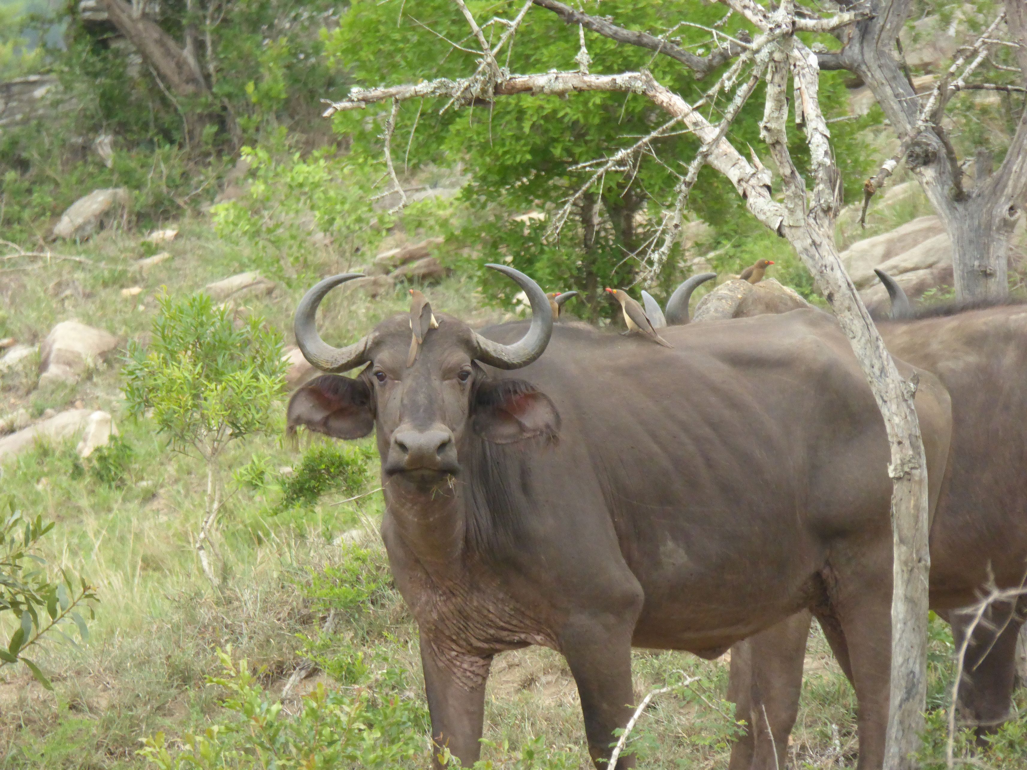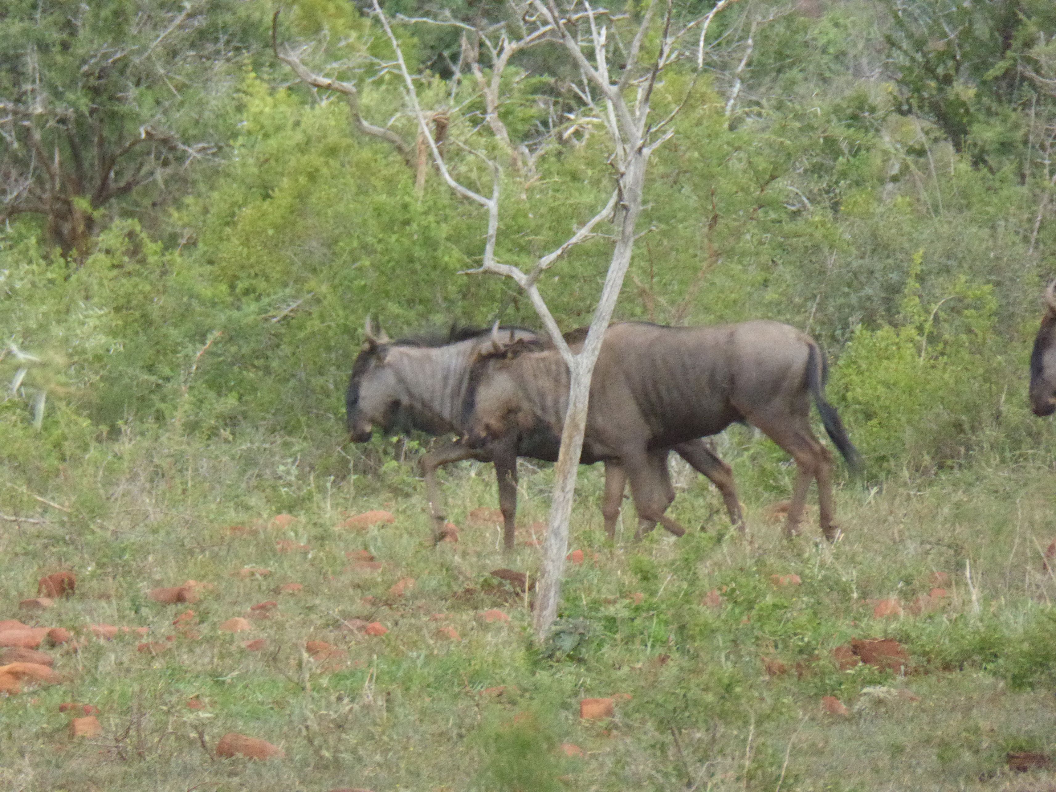 Gesehen haben wir Elefanten, Löwen, einen Gepard, Antilopen wie Impala und Nyala, Gnus, Büffel, Zebras, Giraffen. Breit- und Spitzmaulnashorn, Nilpferde und ein Krokodil, viele spannende Vögel und auch tolle Insekten wie Pillendreher. Und noch viele andere.