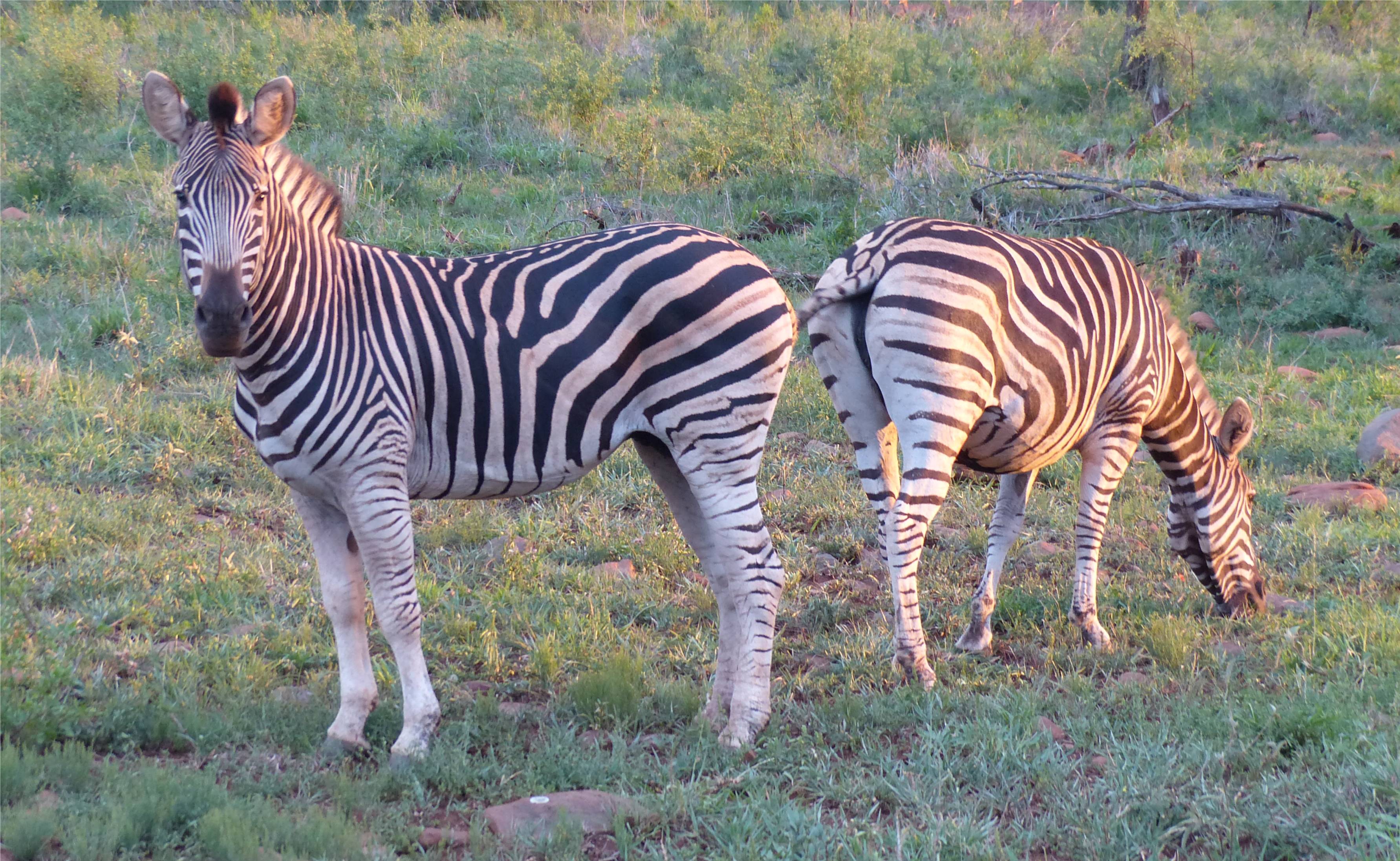 Am allerbesten haben uns natürlich die Tierbegegnungen gefallen. Morgens um fünf und nachmittags um vier ging es los. Jeweils dreieinhalb Stunden haben ein Ranger, ein Ranger-Praktikant und ein Tracker (Spurensucher) mit uns nach Tieren gesucht und sie auch gefunden. Wir hatten großes Glück und einen Ranger, der uns nicht nur sehr viel über die Tiere erzählen konnte, sondern sich auch hervorragend mit dem Management der Parks auskannte. Obwohl wir sicherlich über eine solide Tierfilm- und Zoo-Grundbildung verfügen, haben wir ganz viel gelernt. Den Tieren sind wir viel näher gekommen als vermutet und waren überrascht, wie einfach es war, tolle Fotos mit unseren „ganz normalen“ Fotoapparaten zu schießen. Eine Beschreibung aller Ausfahrten würde den Rahmen sprengen.