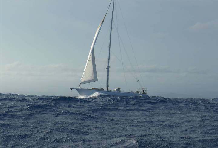 Im Dunkeln sehen wir die Lichter der anderen Yachten. Die halbe Nacht hindurch können wir dem Licht eines anderen Bootes hinterher steuern. Das macht das Steuern von Hand angenehmer. Am nächsten Vormittag setzt endlich der Strom ein, bald nimmt auch der Wind zu, wir können endlich segeln und die Hydrovane kann nun zuverlässig das lästige Steuern übernehmen.