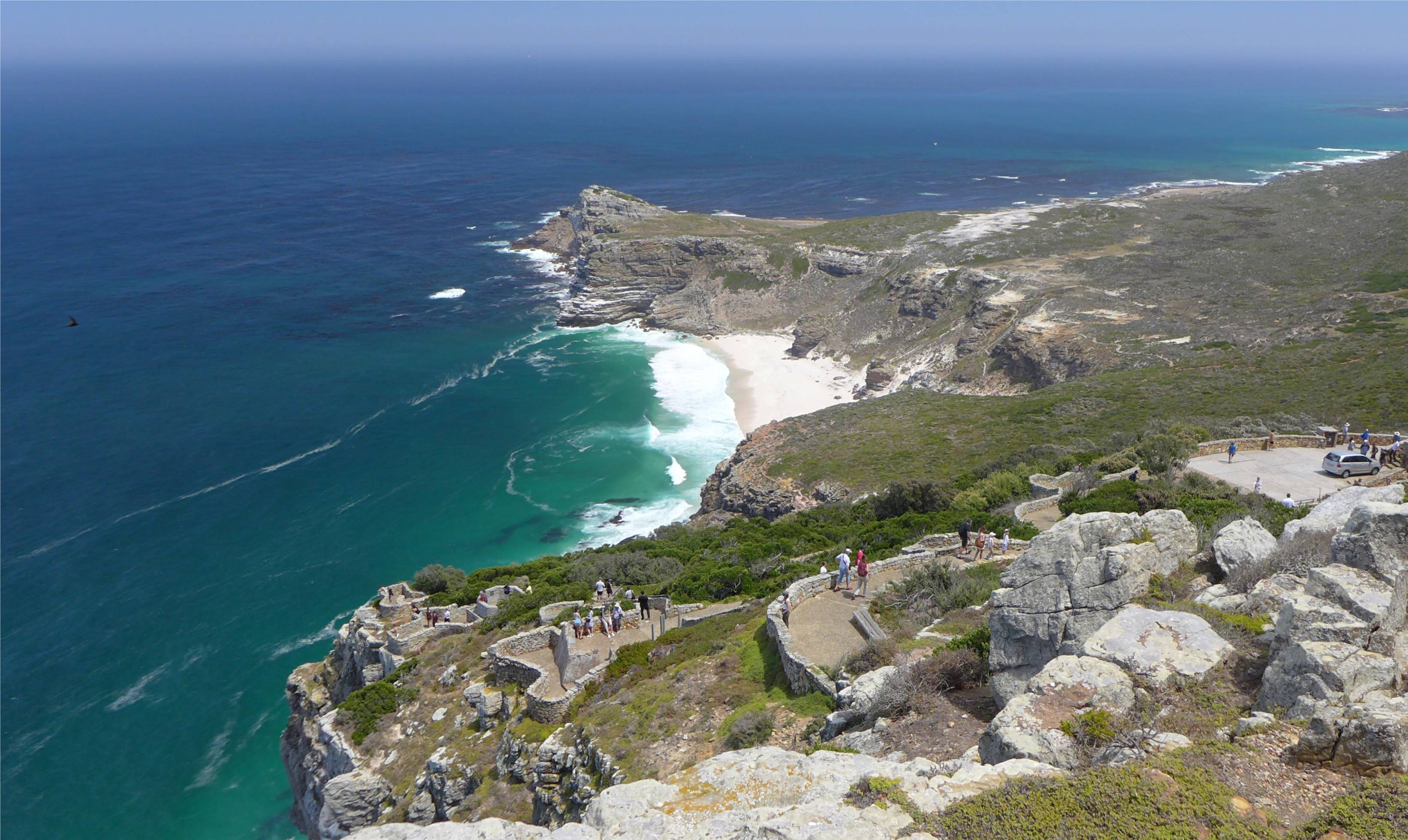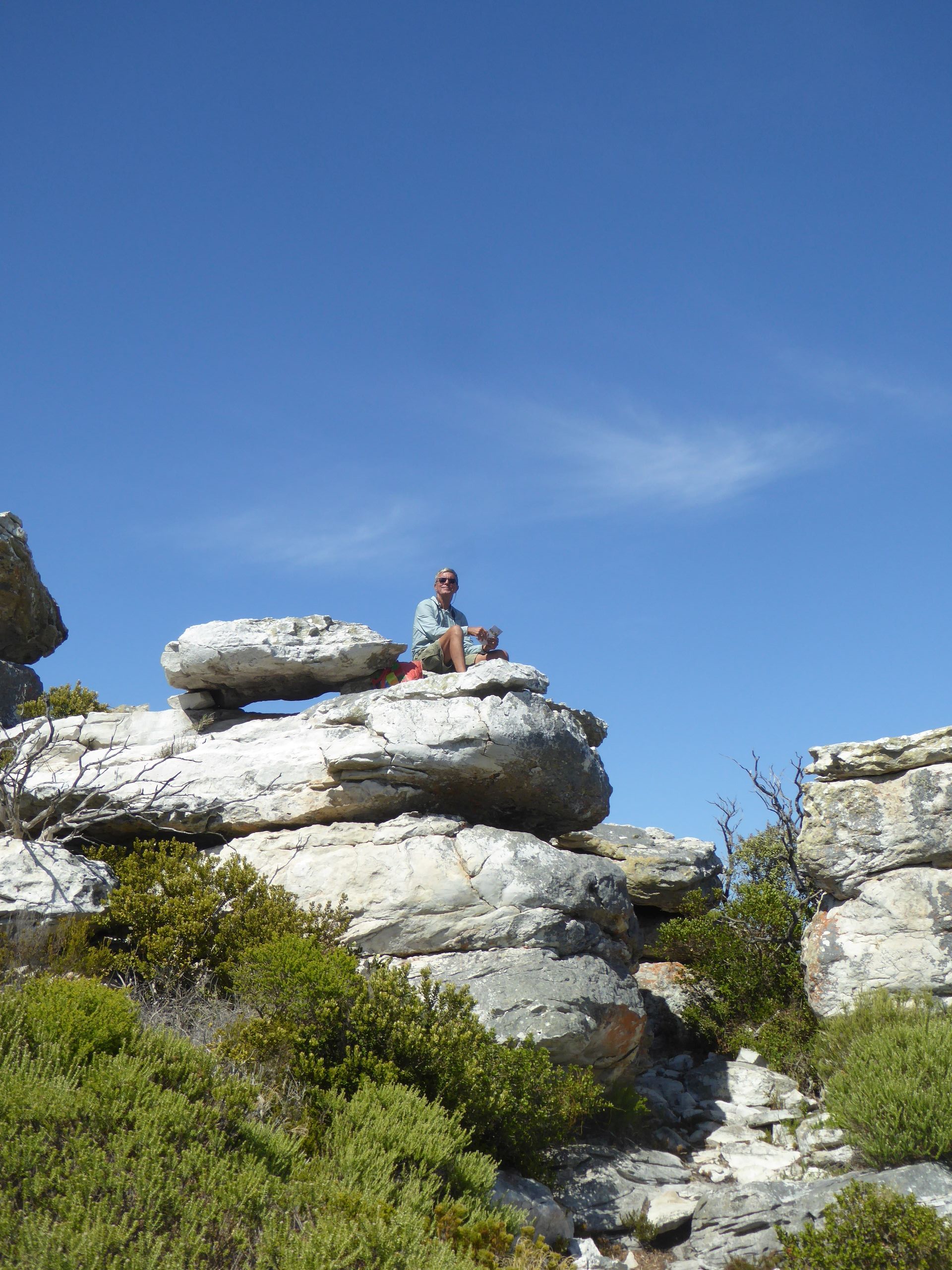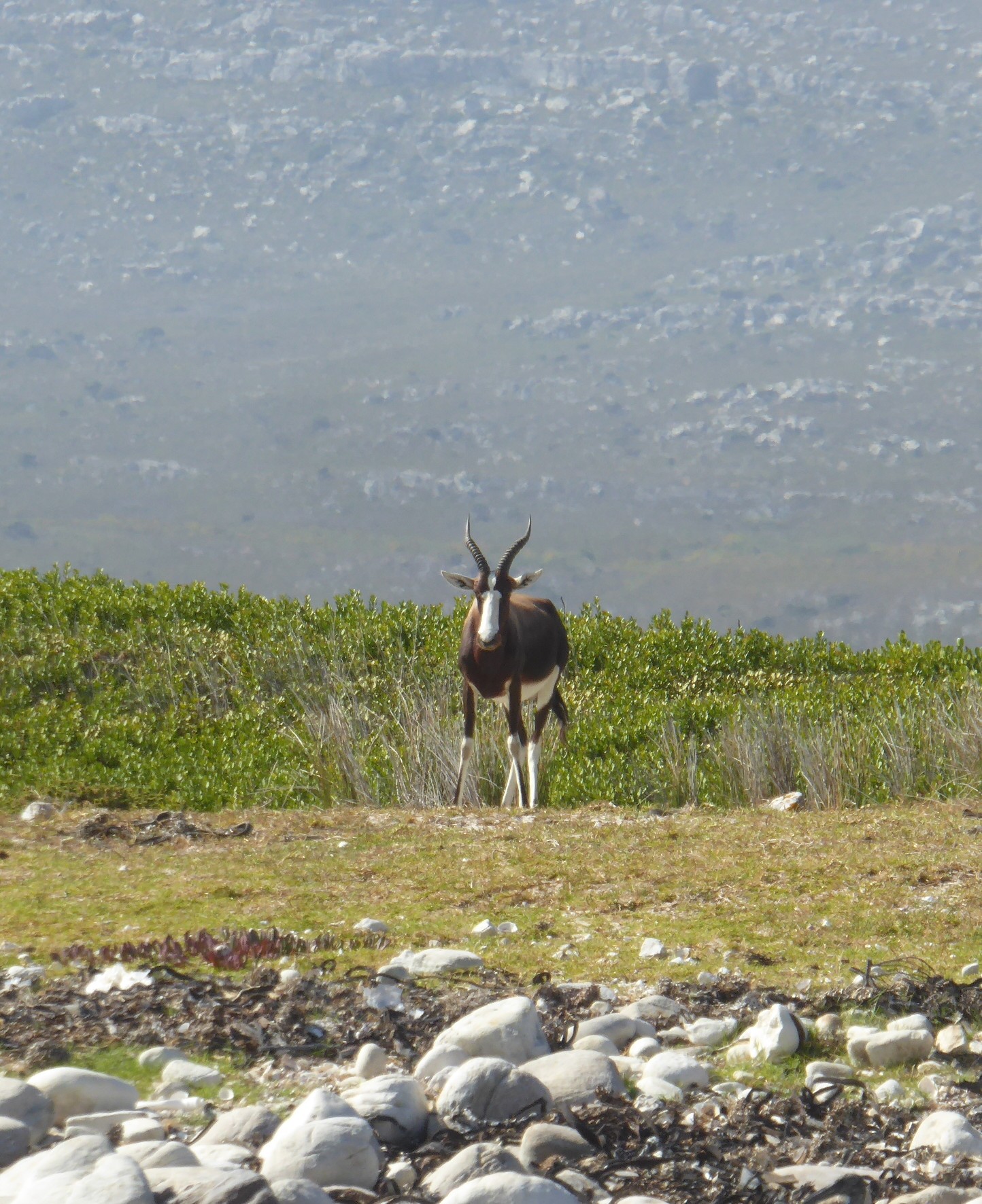 Die Eintrittsgebühr für den Table Mountain National Park, der die Landzunge umfasst an deren Südspitze das Kap der Guten Hoffnung liegt, ist kein Schnäppchen. Wir freuen uns über die weniger befahrenen Nebenstrecken, wo wir Kilometerweit niemanden treffen und laufen überall ein paar Schritte. Auf einem Felsen machen wir einen Brunch mit Aussicht und beobachten Antilopen. Am Cape Point und am Kap der Guten Hoffnung treffen wir erwartungsgemäß auf viele Touristen. Das Besucherzentrum, mit einer schönen Ausstellung zur Entstehung des modernen Menschen, ist hingegen praktisch leer.