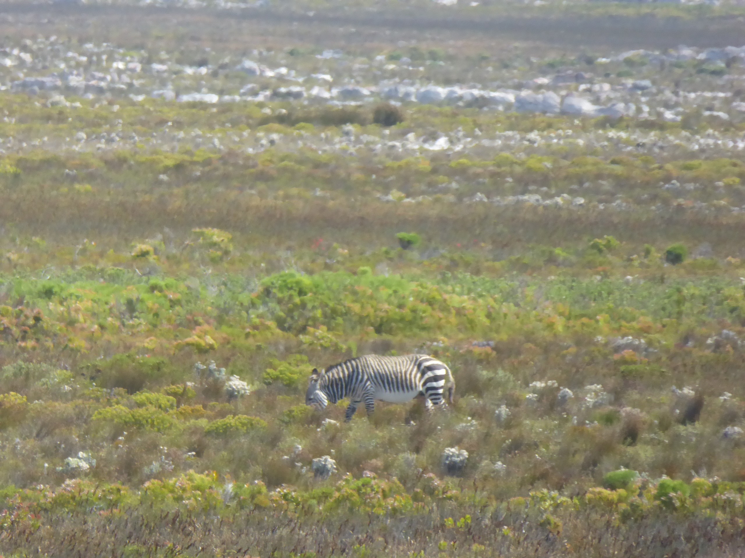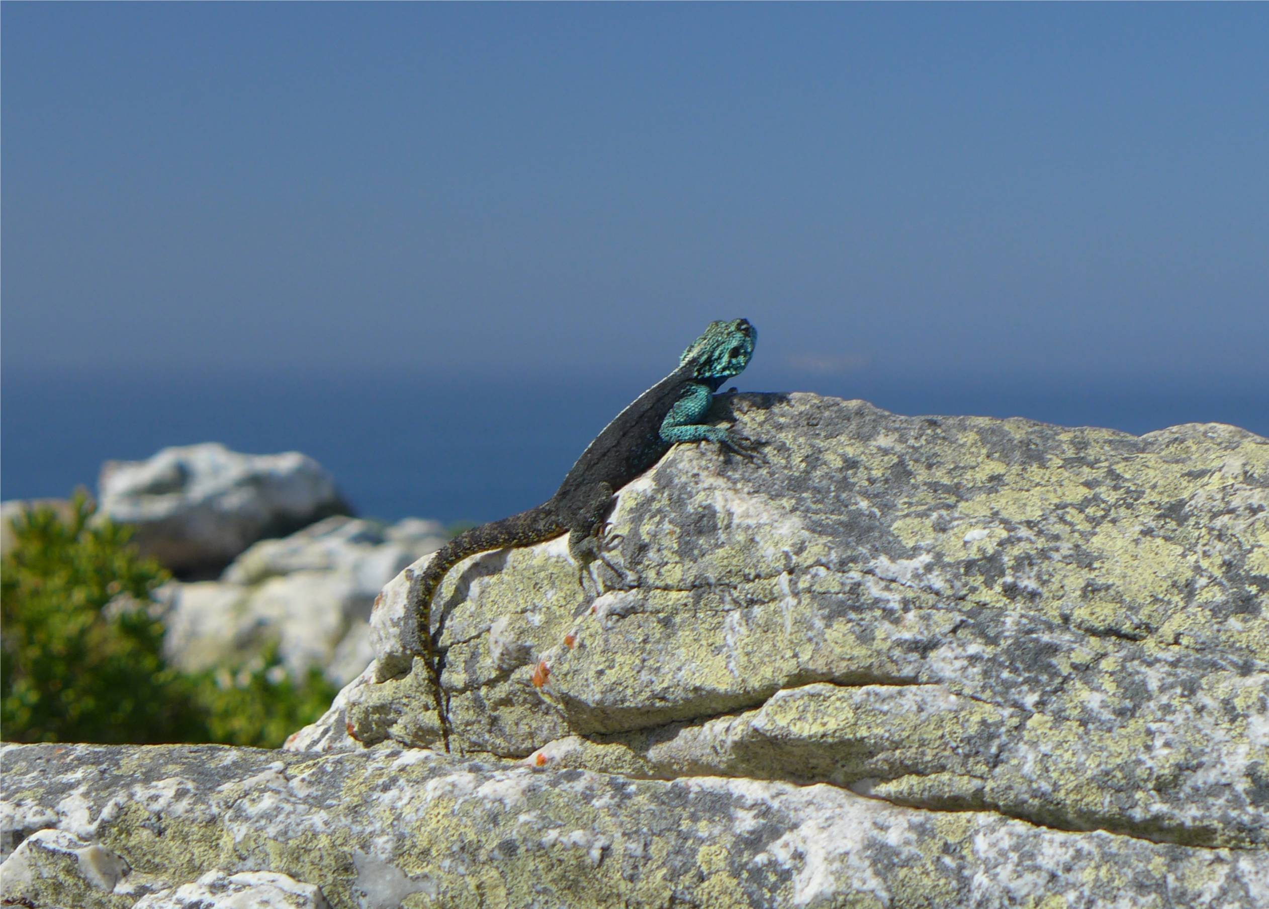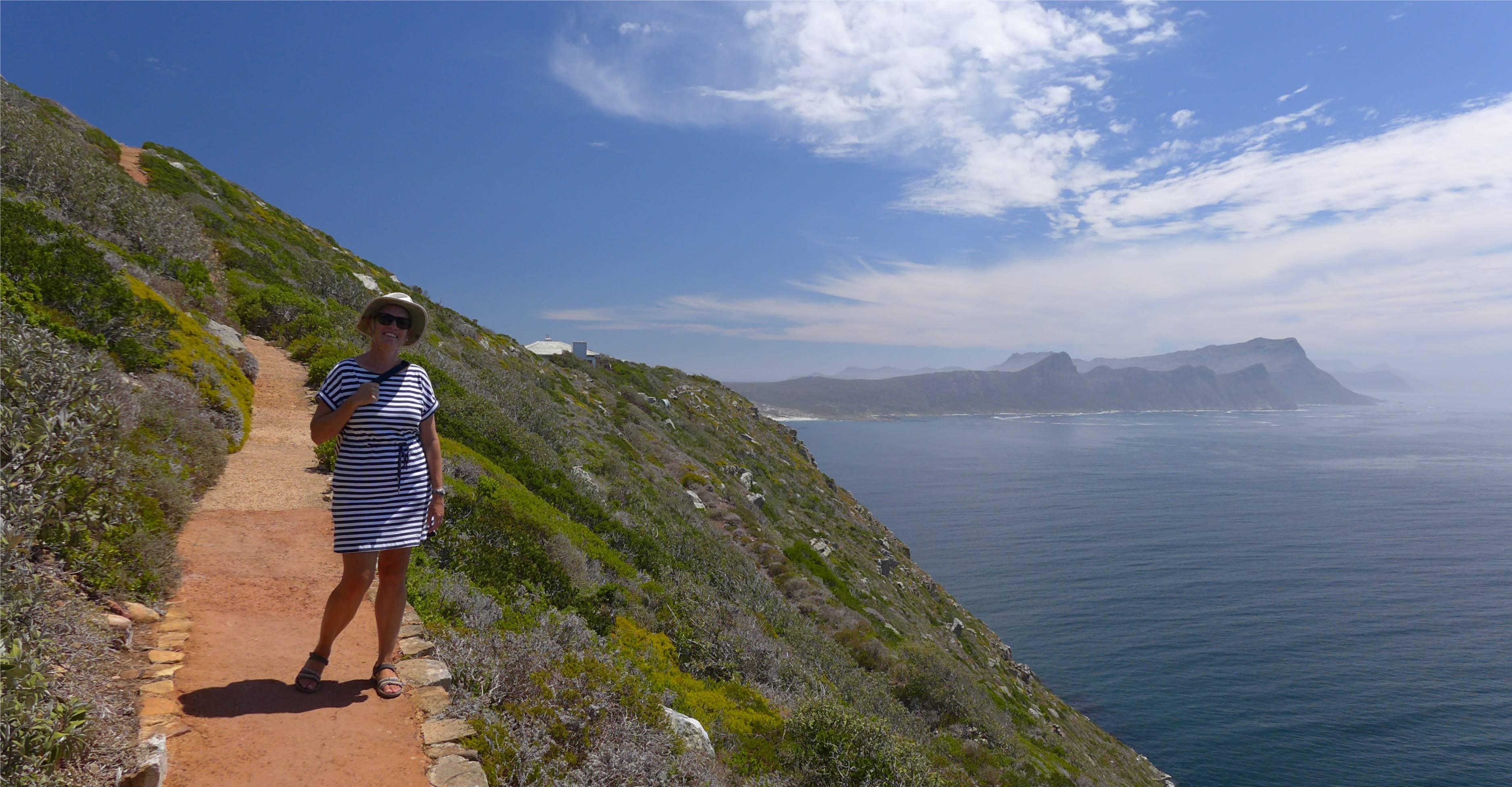 Die Eintrittsgebühr für den Table Mountain National Park, der die Landzunge umfasst an deren Südspitze das Kap der Guten Hoffnung liegt, ist kein Schnäppchen. Wir freuen uns über die weniger befahrenen Nebenstrecken, wo wir Kilometerweit niemanden treffen und laufen überall ein paar Schritte. Auf einem Felsen machen wir einen Brunch mit Aussicht und beobachten Antilopen. Am Cape Point und am Kap der Guten Hoffnung treffen wir erwartungsgemäß auf viele Touristen. Das Besucherzentrum, mit einer schönen Ausstellung zur Entstehung des modernen Menschen, ist hingegen praktisch leer.