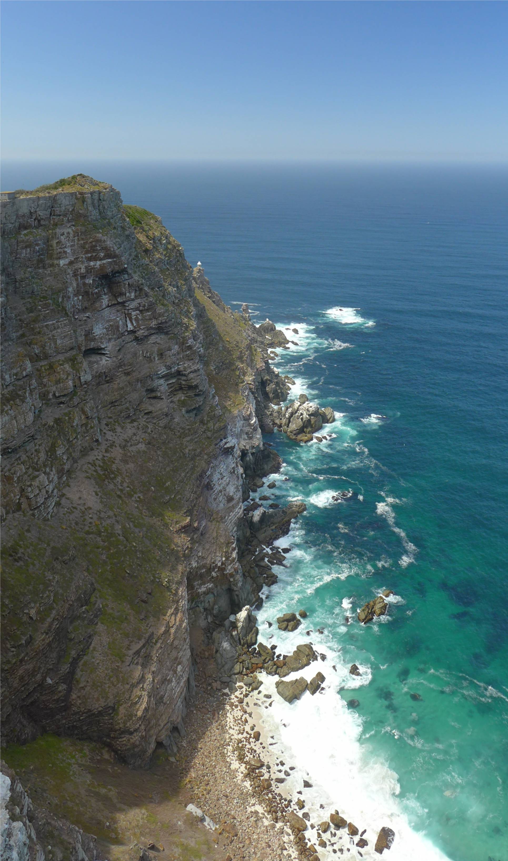 Cape Point ist der südlichste Punkt der Halbinsel, das Kap der Guten Hoffnung markiert die Süd-West-Ecke. Das Kap der Guten Hoffnung wurde zunächst Kap der Stürme bekannt, aus gutem Grund! Aus Marketing-Gründen wurde es umbenannt. Diese Herausforderung-statt-Problem-Strategie war also schon im 16. Jahrhundert populär. Das Wetter hat sich nicht beeindrucken lassen, stürmisch ist es noch heute.