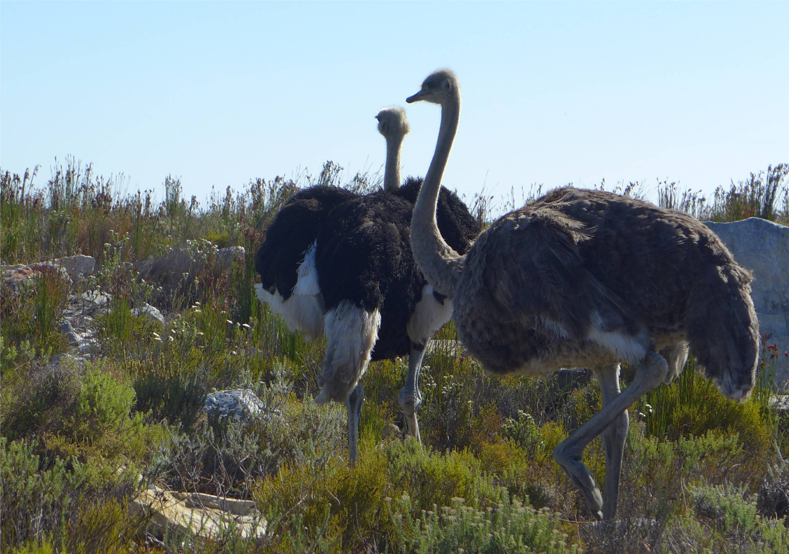 Auf dem Rückweg machen wir noch einen Abstecher und freuen uns über Zebras, Strauße, Affen und Antilopen. Uns gefällt die karge, praktisch baumlose Landschaft mit den vielen verschiedenen Pflanzen mit unscheinbaren Blüten, die für einen gelben oder roten Schimmer sorgen. Der Table Mountain National Park war für uns definitiv ein Highlight. Mühelos hätten wir hier noch mehrere Tage verbringen können.