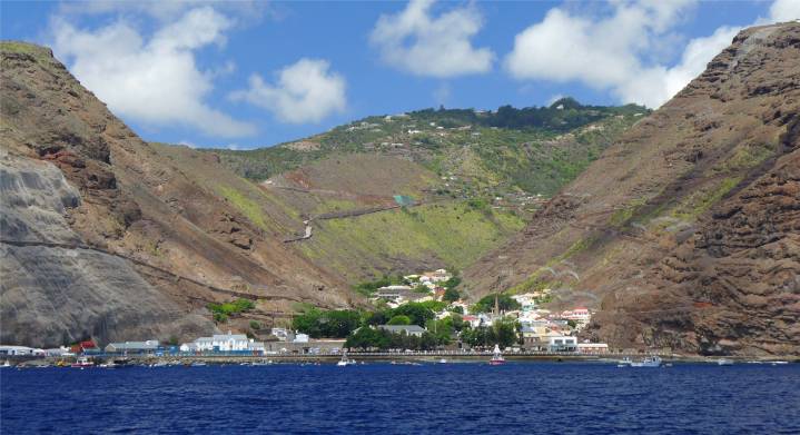Samstagnachmittag (5. April) erreichen wir nach ziemlich genau sechs Tagen Ascension. Die Insel steckt in einer dunkeln Wolke und die Böen nehmen unnötigerweise auf 30 Knoten zu. Wir können bis zum Ende segeln. Den Ankerplatz zwischen Bojenfeld und einer schwimmenden Pipeline zu finden ist nicht schwierig. Unser Anker fällt auf 14 m in klares Wasser und gräbt sich sofort ein.