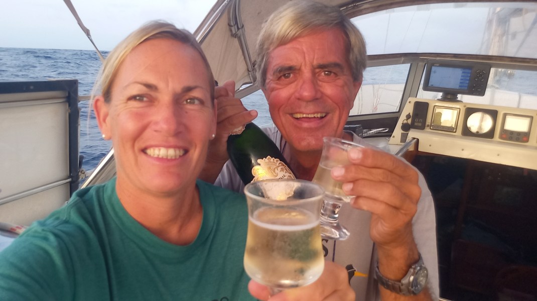 Am 29.4. um 01:00 haben wir unseren Kurs vom 7. November 2017 gekreuzt. Vor siebeneinhalb Jahren sind wir vor dem Wind nach Brasilien gesegelt. Jetzt arbeiten wir uns mühsam gegen den (schwachen) Wind zu den Kapverden vor. Auch wenn wir unser Etappenziel Mindelo noch nicht erreicht haben, feiern wir. Wer doppelt feiert, freut sich länger.