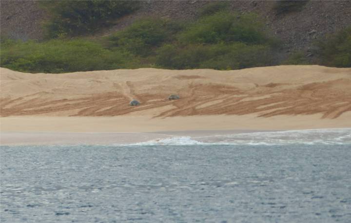 Vom Ankerplatz aus können wir jeden Morgen beobachten, wie die letzten Schildkröten ins Wasser zurückkehren.