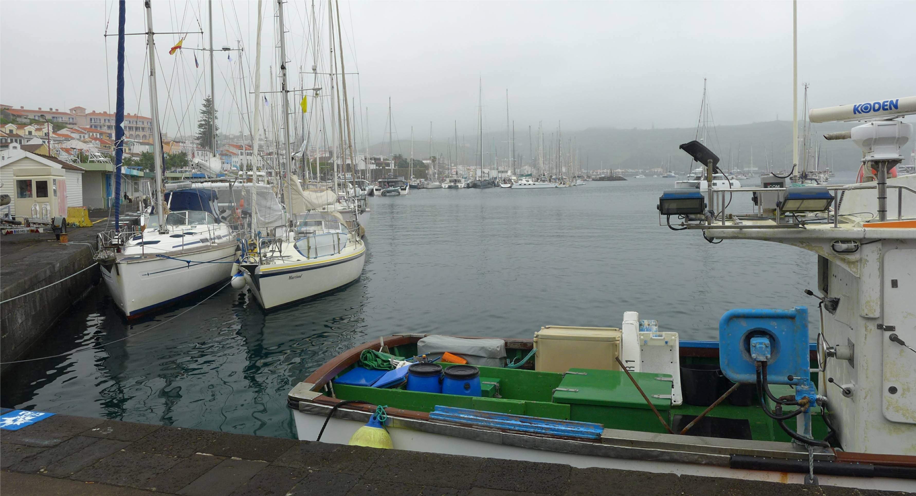 Wir rechnen ein bisschen, welchen Hafen wir mit dem angesagten Wind erreichen können und überlegen kurz, ob wir lieber Ponta Delgada auf São Miguel anlaufen sollten. Der Wetterbericht ist eindeutig. Wir bekommen Westwind mit dem wir super bis Horta segeln können, für die etwas weitere Strecke nach Ponta Delgada reicht er nicht.