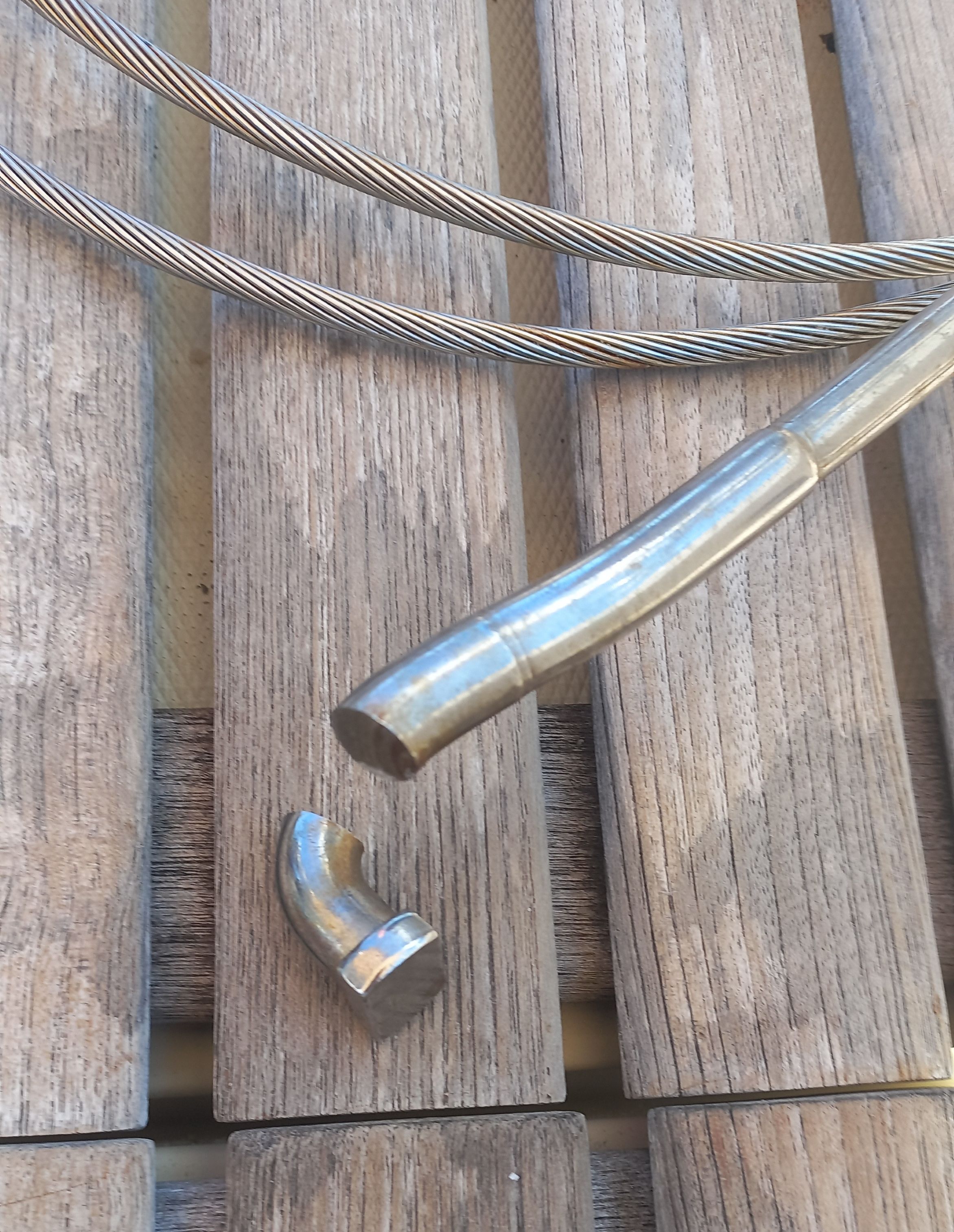 Als Nobbi mittags den Blick über Deck schleifen lässt, fällt ihm auf, dass irgendetwas an Deck liegt. Ein Unterwant. Der Toggel, der Haken, mit dem es im Mast eingehakt war, ist gebrochen. Auf der Leeseite, also der windabgewandten, nicht belasteten Seite. Höchst merkwürdig und beunruhigend. So ein brechendes Want kann, bei entsprechenden Bedingungen, zum Mastverlust führen und das gehört definitiv zu den Erfahrungen, die wir nicht selber machen möchten.