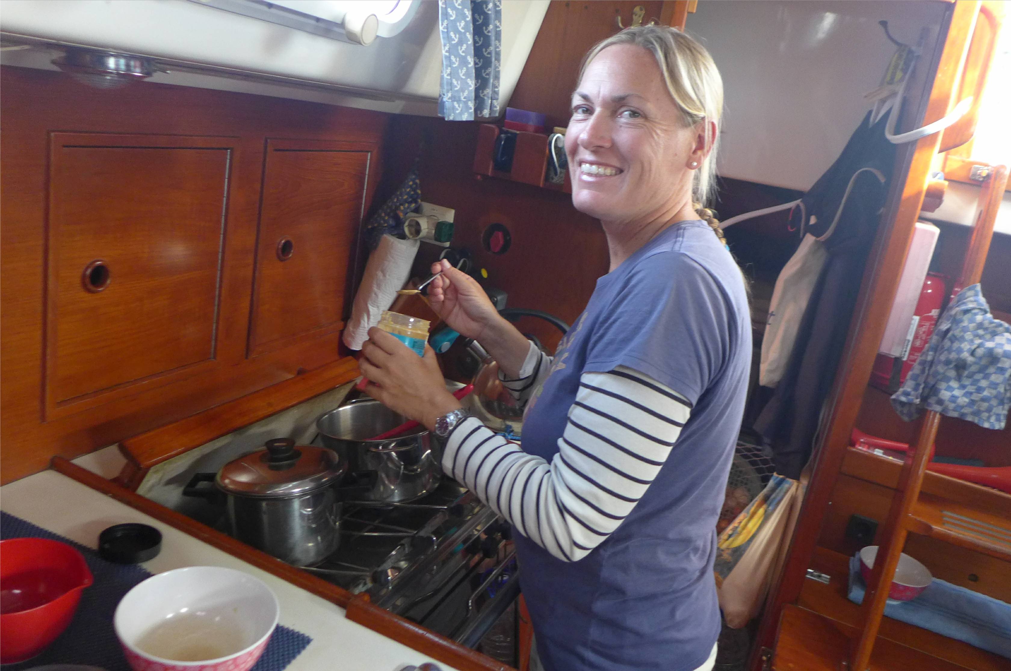 Der Wind dreht, es schauert, es wird flau, dann kommen ein paar Böen, der Wind dreht wieder zurück. Das ist ein bisschen anstrengend, dafür wird Mari langsam sauberer. Vormittags lösen sich die Wolken meistens auf. Leider segeln wir immer noch sehr stabil nach Nordwest, könnte der Wind nicht dauerhaft drehen? Ostwind wäre super.