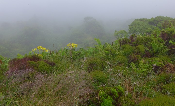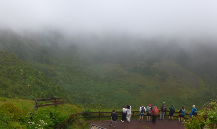 Mit dem Taxi fahren wir zum Ausgangspunkt. Der Weg um die Caldera läuft sich gut, man kann nicht verloren gehen. Den sicherlich schönen Ausblick in den Krater genießen wir für etwa 30 Sekunden. Den ganzen Vormittag werden wir von nassen Wolken umhüllt. Der Ausblick auf die Küste bleibt uns verwehrt. Trotzdem macht die Wanderung Spaß und ist nicht so anstrengend, wie sie in der prallen Sonne gewesen wäre. Den schönen Ausflug beenden wir in einem der zahlreichen Cafés am Hafen. Vielen Dank an Colleen und Brian für die nette Gesellschaft und die interessanten Gespräche.