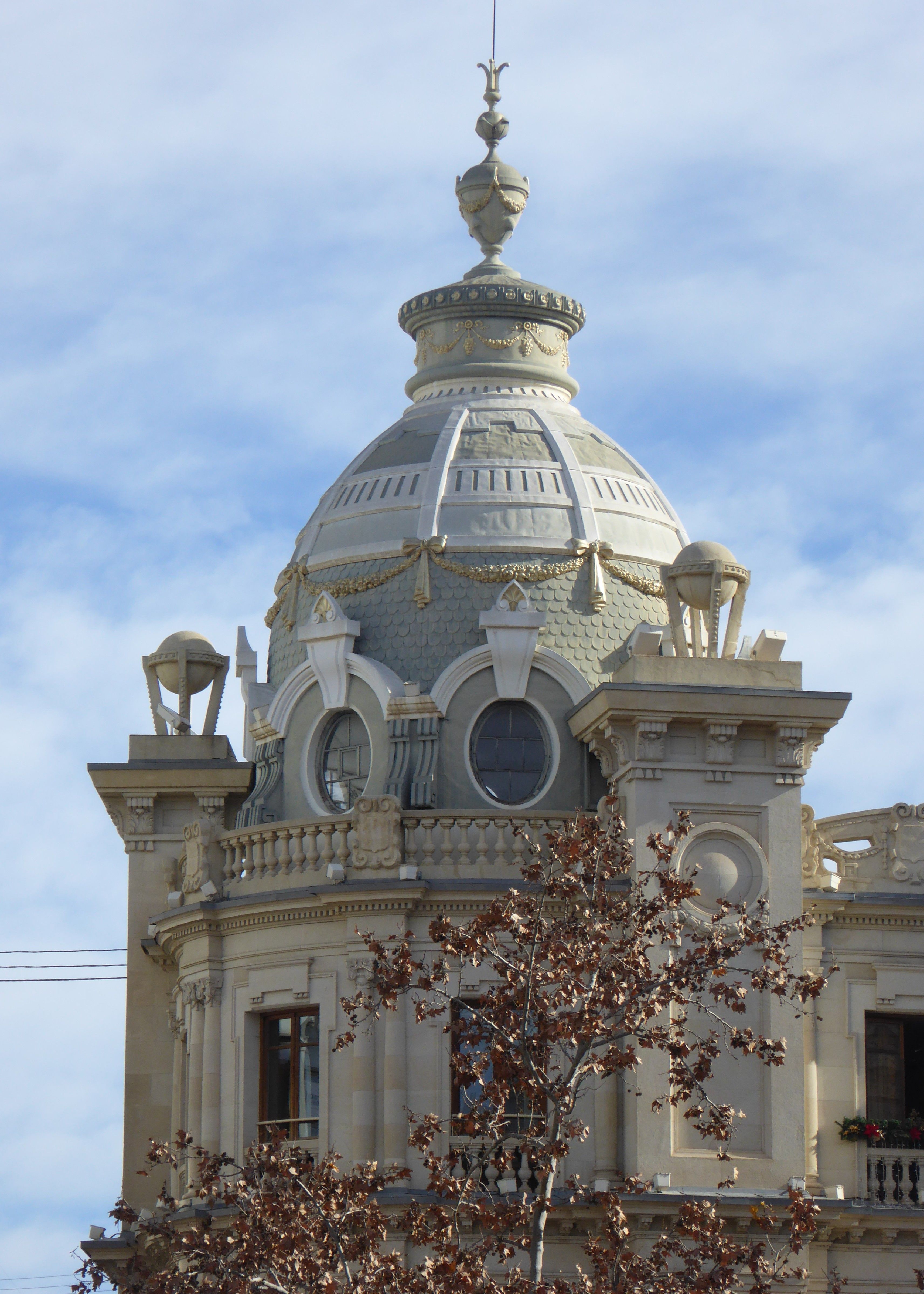 Valencia ist eine tolle, sehr alte Stadt, mit einer interessanten Bebauung und vielen Sehenswürdigkeiten. Das moderne „Ciutat les Artes i les Ciènces“, der Museums- und Veranstaltungskomplex, der genau wie das Auditorio in Santa Cruz von Santiago Calatrava entworfen wurde, steht im Kontrast zu den historischen Gebäuden der Altstadt. Mir haben es besonders die vielen Türmchen, Wetterfahren, Drachen und Fledermäuse angetan. Die Fledermaus ist Bestandteil des Stadtwappens und findet sich an vielen Fassaden. Einer Legende zufolge warnte eine Fledermaus Jaume I., König von Aragon, vor einem Angriff der Mauren, als dieser wiederum die Stadt zurückerobern wollten. Vielleicht handelte es sich auch um ein Drachensymbol, das als Fledermaus gedeutet wurde. Mir gefällt die Legende mit der Fledermaus, die Geschichte schreibt, allerdings besser. Andere (kleine) Tiere haben in Valencia ebenfalls die Geschichte bestimmt: die Seidenraupen. Davon zeugt noch heute die Seidenbörse aus dem 15. Jahrhundert.