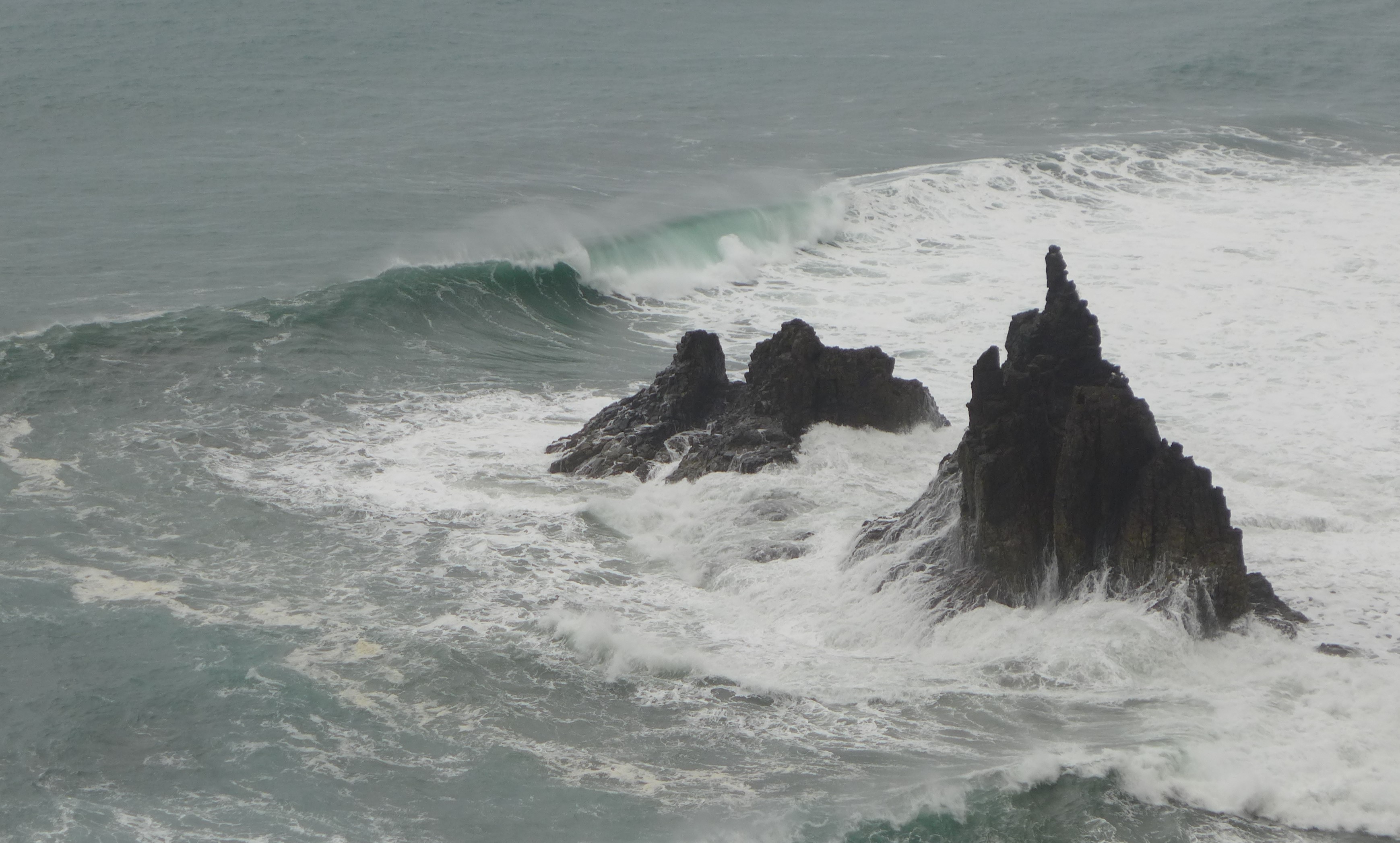 Gemeinsam erkunden wir Santa Cruz und Teneriffa, schlendern über den Markt, fahren mehrfach durch den Teide-Nationalpark, geraten in Orotava in den strömenden Regen, bestaunen die steile Nordküste, freuen uns über blühende Mandelbäume, besuchen mehrere Museen, sehen uns die starke Brandung an, hören ein fantastisches Konzert im Auditorio, entdecken im Palmetum eine äußerst selten blühende Palme (Corypha umbraculifera) und verbringen einfach eine schöne gemeinsame Zeit, die viel zu schnell zu Ende geht.