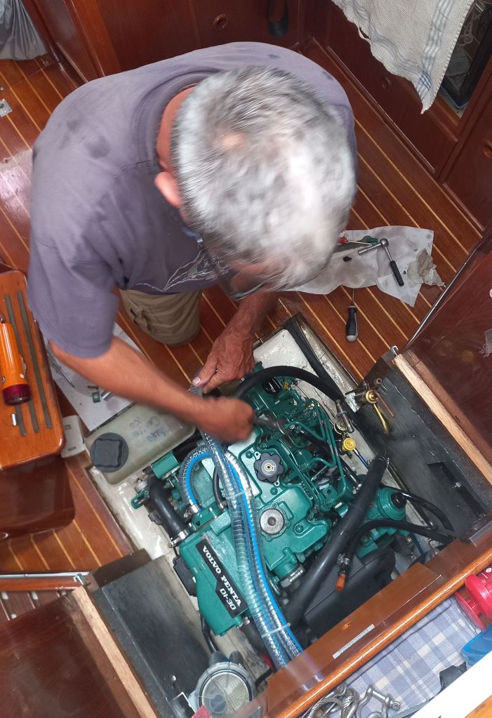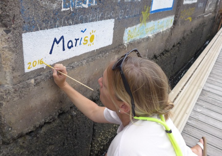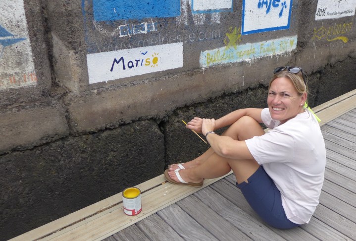 Das Sturmtief Therese, schickt uns in Santa Cruz schließlich doch noch Regen und Gewitter. In den Regenpausen male ich unseren Marisol-Schriftzug an die Mauer des Hafenbeckens. Das bringt uns sicherlich Glück auf den nächsten Etappen. Nobbi wechselt Dichtungen in den Brennstoffleitungen des Motors. Große Sauerei. Als das dicke Tief sich endlich auffüllt und verschwindet, nehmen wir Abschied von unserem Winterliegeplatz in Santa Cruz, der Stadt, in der wir uns zuhause gefühlt haben und beginnen die Segelsaison 2026!