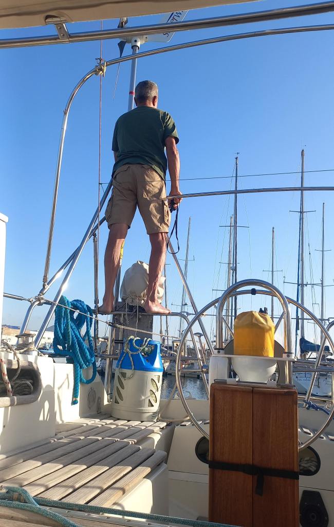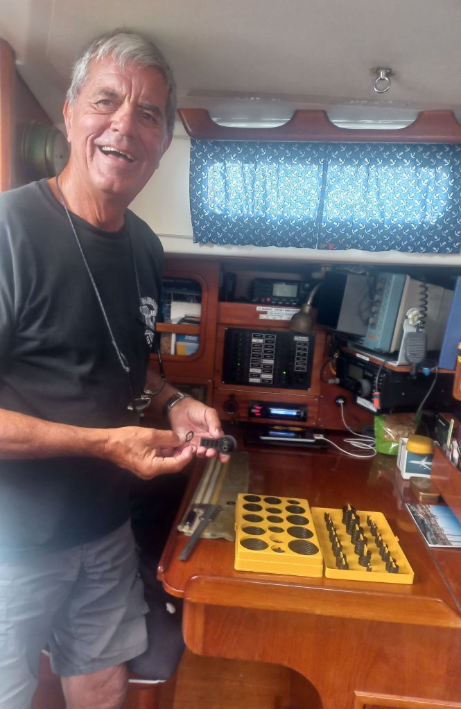 Ab und zu tüddeln wir ein bisschen am Boot rum. Durch die Griffe des Luks im Vorschiff tropfte es, wenn auf See Wasser über Deck lief. Wir haben sie auseinander gebaut, gründlich geputzt und die O-Ringe ersetzt. Nun sollte es auch bei überkommendem Wasser nicht mehr auf meine Koje tropfen.