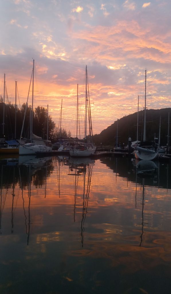 Es ist schön, wieder auf dem Wasser zu Hause zu sein. Ich bin ohnehin kein Fan des Lebens „on the hard“, aber bei diesen sehr hohen Temperaturen ist es noch weniger schön. Zurück in unserem Hafen legen wir noch eine kleine Arbeitsphase ein. Die Liste mit Erledigungen ist natürlich nicht abgearbeitet, aber ein ganzes Stück kürzer geworden. Zwischenzeitlich sind Arbeiten an Deck eine Strafe. Es ist zu heiß. Man verbrennt sich an der Genua-Schiene, am Bimini-Gestänge und an den Solar-Panels. In den ganz warmen Mittagsstunden sogar auf dem weißen Deck. Trotzdem haben wir einiges abgearbeitet. Der Salontisch ist in neuer Position angeschraubt worden und wackelt nicht mehr, das Deck ist poliert, die Windeinheit im Mast wurde getauscht, ein paar Verkabelungen optimiert und viele Klebestreifen und Bändsel wurden ersetzt.