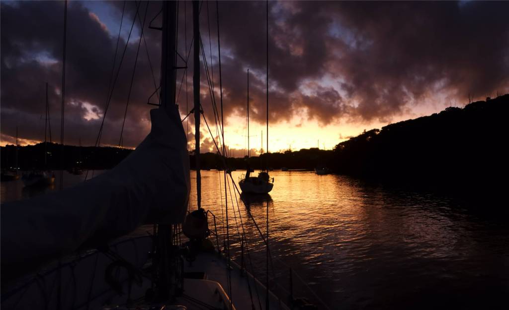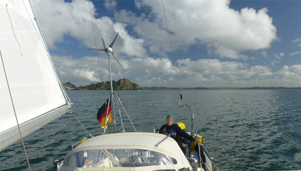 Mittwoch und Donnerstag machen wir es uns an Bord gemütlich. Es stürmt und regnet heftig. Der Sturm kommt aus Nordosten und wir liegen hier gut geschützt. Die Böen pfeifen ganz ordentlich im Rigg. Wie unruhig es ist hängt von der Tide ab, bei „Wind gegen Strom“ knallen kleine Schwabbelwellen gegen das Heck. Am Donnerstag sehen wir am merkwürdigen Wellenbild, dass sich draußen hoher Schwell aufgebaut haben muss. Sieben Meter sollen es bei Cape Brett sein. Wie gut, dass wir hier drinnen sind und nicht auf See!