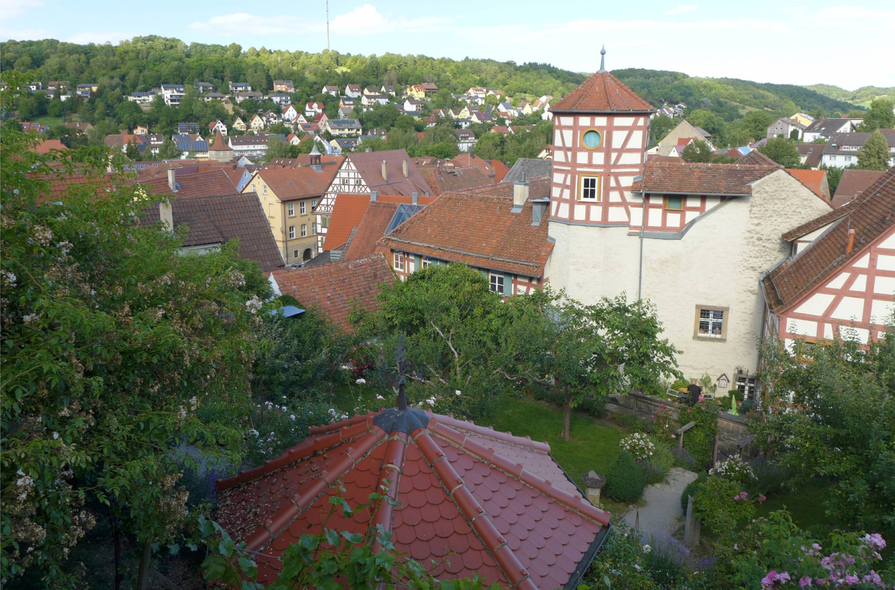In Creglingen an der romantischen Straßen finden wir eine tolle Ferienwohnung über einer Bäckerei. Hier wohnen wir die ersten Tage. Auf schmalen Straßen schlängeln wir uns durch kleine Orte. Immer auf der Grenze zwischen Baden Württemberg und Bayern. Uns gefallen die aufgeräumten Orte mit den vielen Blumen. Ob es hier ein Gesetz gibt, das Geranien an Häusern und Brücken vorschreibt? Uns gefällt es.
