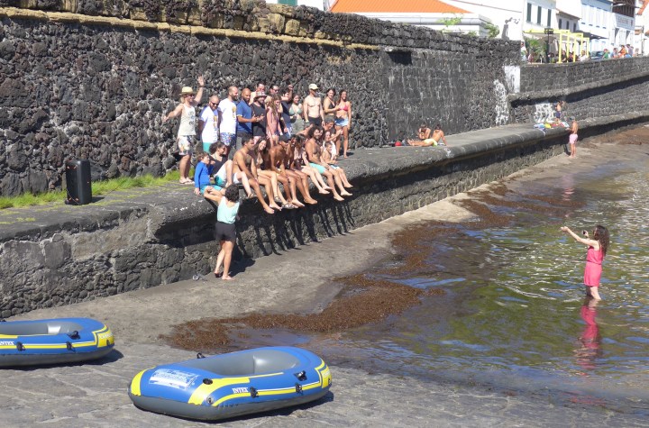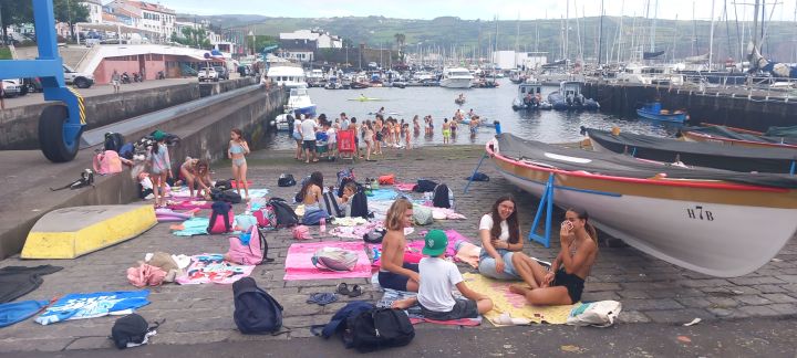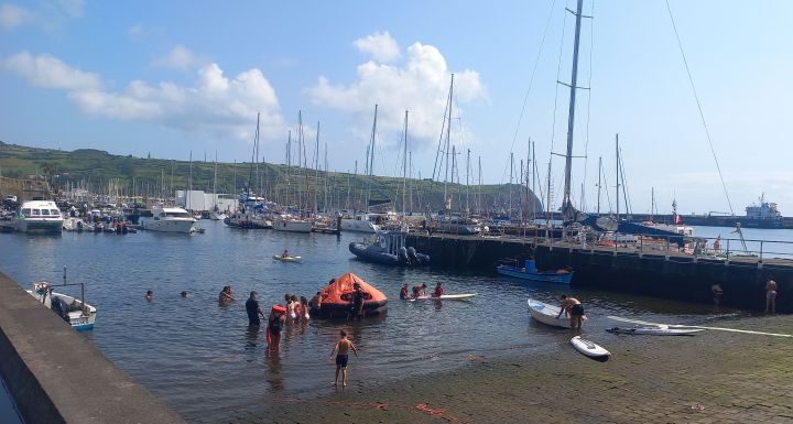 Der Hafen von Horta dient als Freibad.