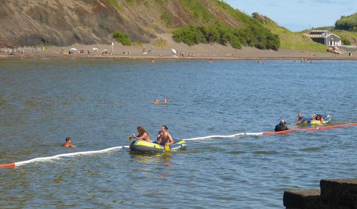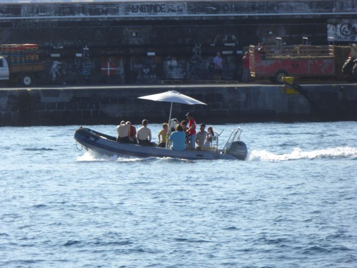 Dies ist eins der Begleitboote der Schwimmer, die den Kanal nach Pico durchqueren.