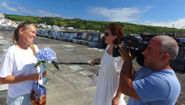 Nach einem kleinen Stimmungstief haben wir akzeptiert, dass wir eben noch ein bisschen in Horta bleiben müssen. Die „Semana do Mar“ sorgt mit ihren Veranstaltungen weiterhin für Abwechslung. Im Hafenbecken findet ein Wasserball-Turnier statt, es gibt ein Kanu-Rennen und neben vielen anderen Regatten auch eine Opti-Regatta für Ü50 Oldies, die bei Flaute versuchen im Hafenbecken aufzukreuzen. Die Velsheda, eine J-Class Yacht von 1933, ist in Horta eingelaufen. Natürlich sehen wir sie uns aus der Nähe an. Viele Jahre hing ein Poster von diesem sehr schönen Schiff in meiner Wohnung – erst in Kiel, später in Frankfurt. Beim Folklore-Festival tanzen verschiedene Gruppen recht eintönig sehr ähnliche traditionelle Tänze, durch die fröhliche Stimmung ist es trotzdem mitreißend. Inzwischen kennen wir so viele Leute, dass wir überall jemanden treffen. Den Tankwart von der Wassertankstelle für die Fischer, die Besitzerin der Wäscherei, den Kassierer aus dem Supermarkt, die Verkäuferin aus dem Yachtladen. Die Regatta der Walboote, zu der auch Boote der Nachbarinseln eingetroffen sind, ist toll anzusehen. Der Start ist leider von der äußeren Hafenmole verdeckt, aber das Ziel ist nahe an der inneren Mole auf der wir sitzen. Die kiellosen Boote sind mit ihren großen Segelflächen schnell, bleiben aber in der Wende oft stecken. Einige Skipper fahren auf der Kreuz zu tief in die Bucht und verhungern in einer windlosen Zone, aber an der Ziellinie vor der Mole wird bis zum Schluss um die Position gekämpft. Auf der Parade zum Abschluss der Semana do Mar dreht sich alles ums Meer und seine Bewohner. Tintenfische, Quallen, Haie, Mantas und Wellen. Unser Favorit ist das Dorf Praia do Norte. Die Gruppe erzählt eine spannende Geschichte von einem Wal, der von einem Walfangboot gejagt wird, entkommt und dann von Whale-Watchern fotografiert wird. Alle Akteure haben sichtlich Spaß und die Vorführung mit großer Liebe zum Detail vorbereitet. Die Stars sind die Kinder im Delfinkostüm, die durch die Wellen springen. Heute oder morgen sollen wir erfahren, ob die Reparatur unseres Wärmetauschers geklappt hat oder ob wir weiterhin warten müssen.