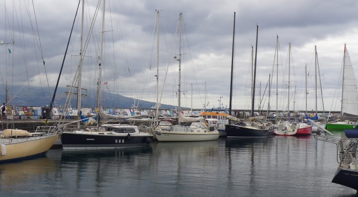 Der Wind soll auf Ost drehen. Nachdem wir so lange recht ruhig an unserem Liegeplatz lagen, auch bei Ostwind, machen wir uns wenig Gedanken. Es wird jedoch richtig ungemütlich. Zwei Nächte nacheinander treffen wir die Nachbarn auf der Pier, die ebenfalls ihre Leinen und Fender kontrollieren. In der zweiten Nacht schlafen wir kaum. Böen bis 30 Knoten anstatt der angesagten 10. Der Wind weht mal nördlich, mal südlich um den Pico herum und wird ordentlich beschleunigt. Die kleinen Wellen, die sich im Hafen bilden, knallen ans Heck. Im Ankerfeld kollidieren nachts um drei zwei Boote und treiben in unsere Richtung. Es ist glimpflich ausgegangen und die Boote konnten ohne Schäden getrennt werden. Morgens gehe ich ins Hafen-Büro und frage, ob wir umziehen dürfen. Wir verlegen an einen geschützten Platz auf der Innenseite der Mole und schlafen dort in der ersten Nacht zehn Stunden. Leider können wir nicht dort bleiben, bekommen aber einen ruhigen Platz im Marina-Becken längsseits an einem Segler-Wrack zugewiesen.