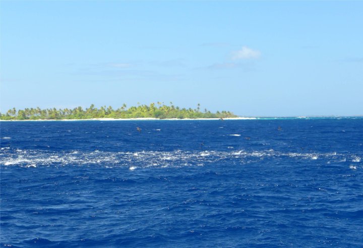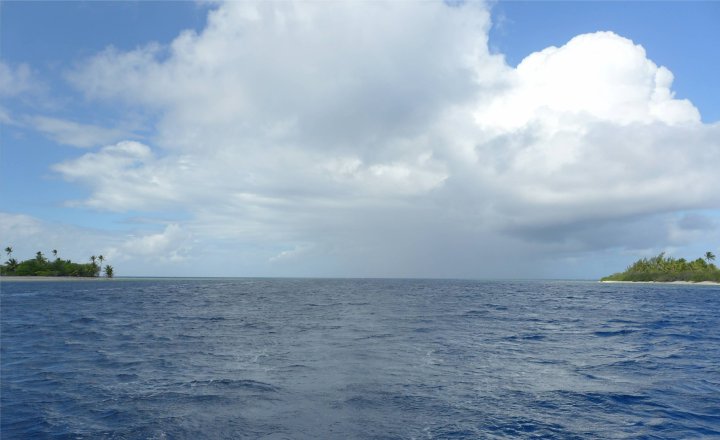 Fünf Windstärken aus Ost bescheren uns eine flotte Fahrt. Die Wellen sind mit einem Meter fünfzig sehr angenehm, nur ab und zu kommt eine Wolke und bringt uns ein paar Böen. In der Nacht nimmt der Wind immer weiter zu, leider auch die Wellen. Nun haben wir sechs Bft in Böen sieben bis acht. Mari zeigt sich völlig unbeeindruckt, wir rauschen dahin. Es macht richtig Spaß, nur die Regenschauer stören. Der Spaß wäre ungetrübt, wenn wir nicht ein Atoll anlaufen wollen würden. Diesen starken Wind und die hohe Welle können wir in einem engen Pass nicht brauchen. Wir haben uns vorher verschiedene Möglichkeiten durchgeplant und entscheiden uns nun für den Nord-Pass von Fakarava. Der Pass ist breit, der breiteste in Französisch Polynesien, und er liegt auf der Nordseite des Atolls, bei Südost Wind also auf der Wind abgewandten Seite.