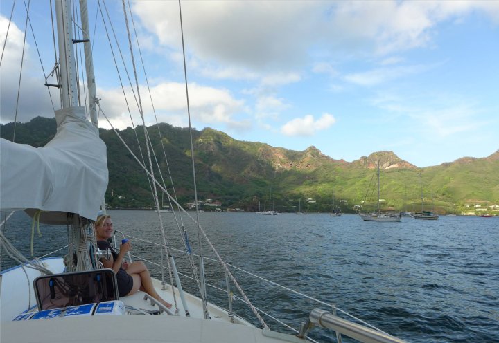17 Meilen stehen auf dem Programm, eigentlich eine uebersichtliche Strecke. In der Lagune jedoch, sind 17 Meilen nach Westen ganz schoen weit. Startet man frueh, steht die Sonne noch zu niedrig, nachmittags jedoch, wenn die Sonne im Westen steht, wird ihr Licht auf der Oberflaeche reflektiert und man sieht die Korallenkoepfe nicht. Wir haben einen Tag mit perfektem Wetter erwischt, moderater Wind von achtern und keine Wolke am Himmel. Wir gleiten mit reduzierter Fahrt dahin, die Korallentuerme leuchten im tiefblauen Wasser. Trotzdem ist es anstrengend so lange konzentriert zu navigieren und wir sind froh, als wir den Ankerplatz ansteuern koennen.