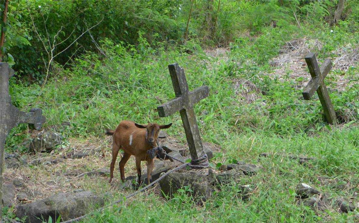 Fiji Makogai Ziegen auf dem Leprafriedhof