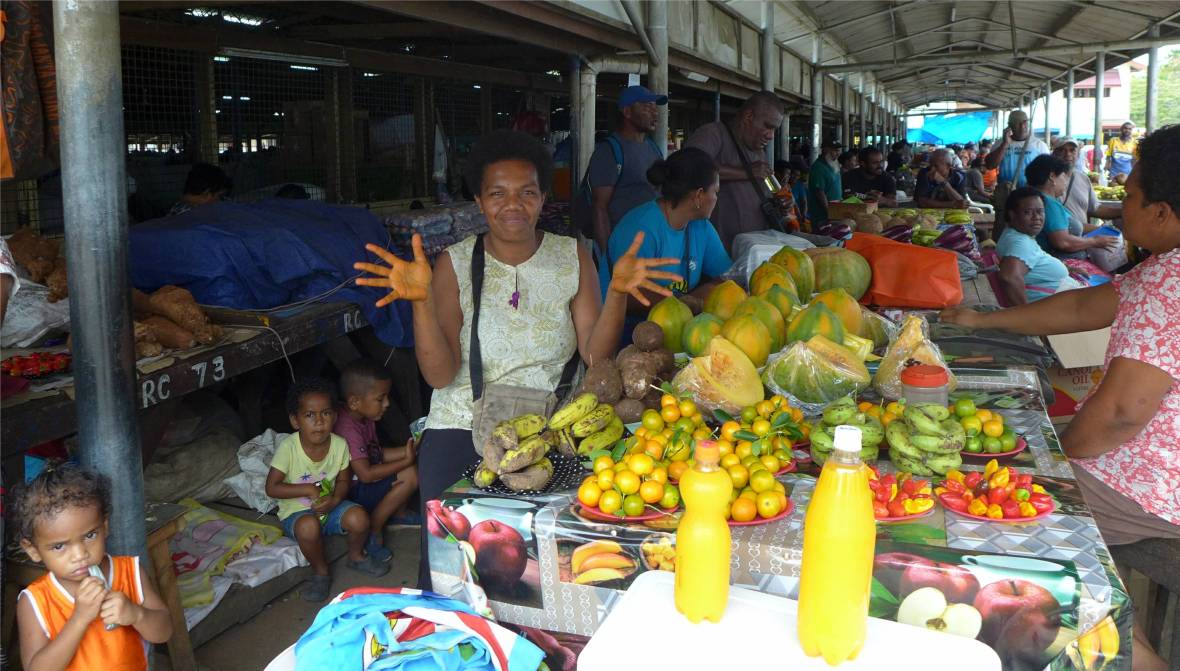 Fiji Vanua Levu ein e froehliche Marktfrau
