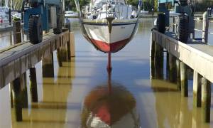 Erst im Juni 2022 können wir endlich zu unserer Marisol zurückkehren. Zum Glück hat sie unsere lange Abwesenheit gut überstanden. Zweieinhalb Jahre lag sie an ihrer Boje und hat auf uns gewartet. In der Werft werden die Austern vom Rumpf entfernt. Wir erneuern die Borddurchlässe und das Antifouling, es regnet fast durchgehend was die Bootsarbeiten sehr erschwert.