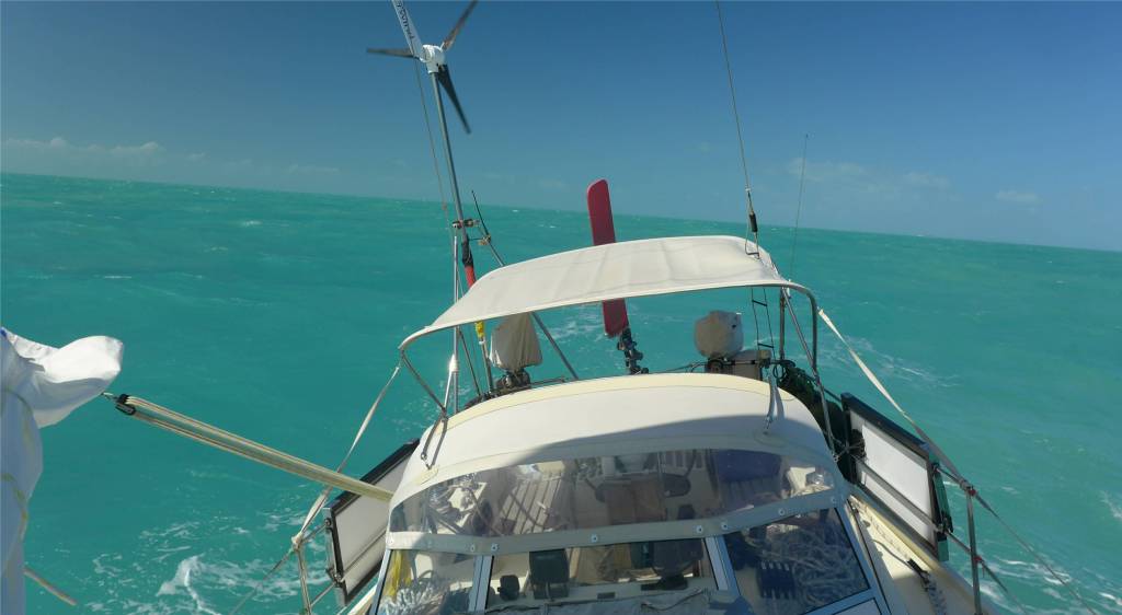 Starker Wind und hohe Wellen sorgen für ungemütliche Tage. Zunächst wandert der bange Blick immer wieder zur Windanzeige, doch unsere Mari segelt tapfer und unbeeindruckt voran. Wir vertrauen ihr und der Windsteueranlage. Trotzdem sind wir froh, als der Wind abnimmt und das Bordleben sich wieder gemütlicher gestaltet.
