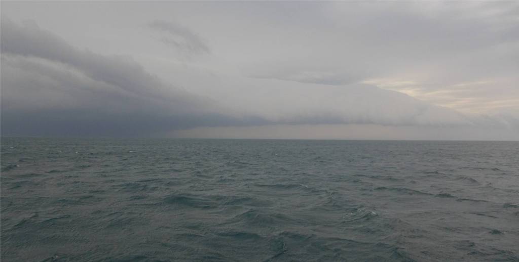 Ein dicker Squall vor der Küste Französisch Guyanas in dem der Wind innerhalb von Minuten von drei auf sieben Beaufort zunimmt, natürlich während das Essen auf dem Herd steht, holt uns zurück in die Seglerrealität.