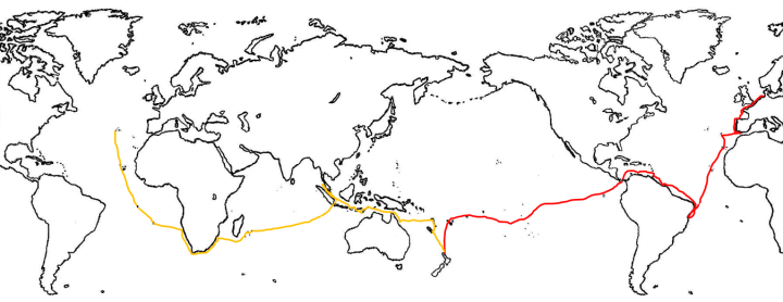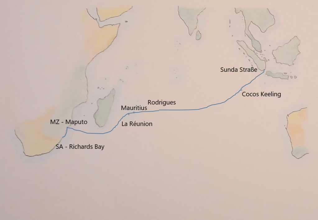 7. Etappe von Langkawi und Indonesien über den Indischen Ozean nach Südafrika